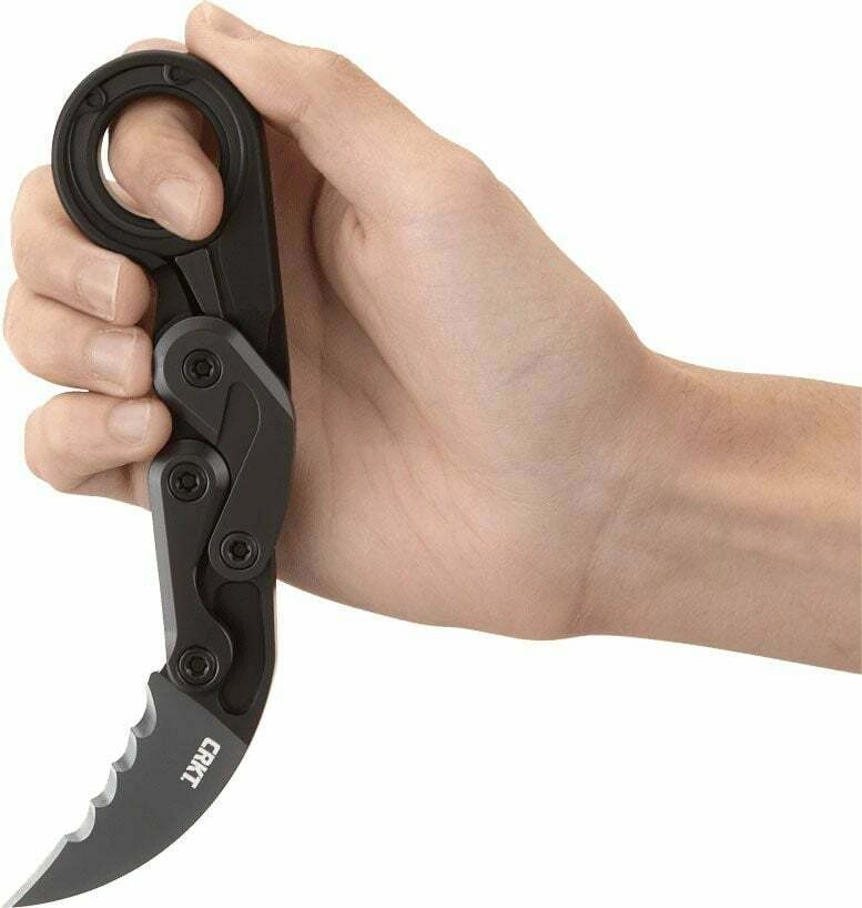 CRKT PROVOKE VEFF SERRATIONS este o interpretare modernă a karambitului, proiectată de Joe Caswell. Construcția cinematică basculează lama înainte printr-o singură apăsare cu degetul mare, fără a schimba priza. Această operare intuitivă și sigură este ideală pentru EDC și sarcini mai solicitante. Acoperirea neagră TiN pe lama din oțel pentru scule D2 oferă duritate ridicată, capacitate excelentă de tăiere și păstrare îndelungată a muchiei.