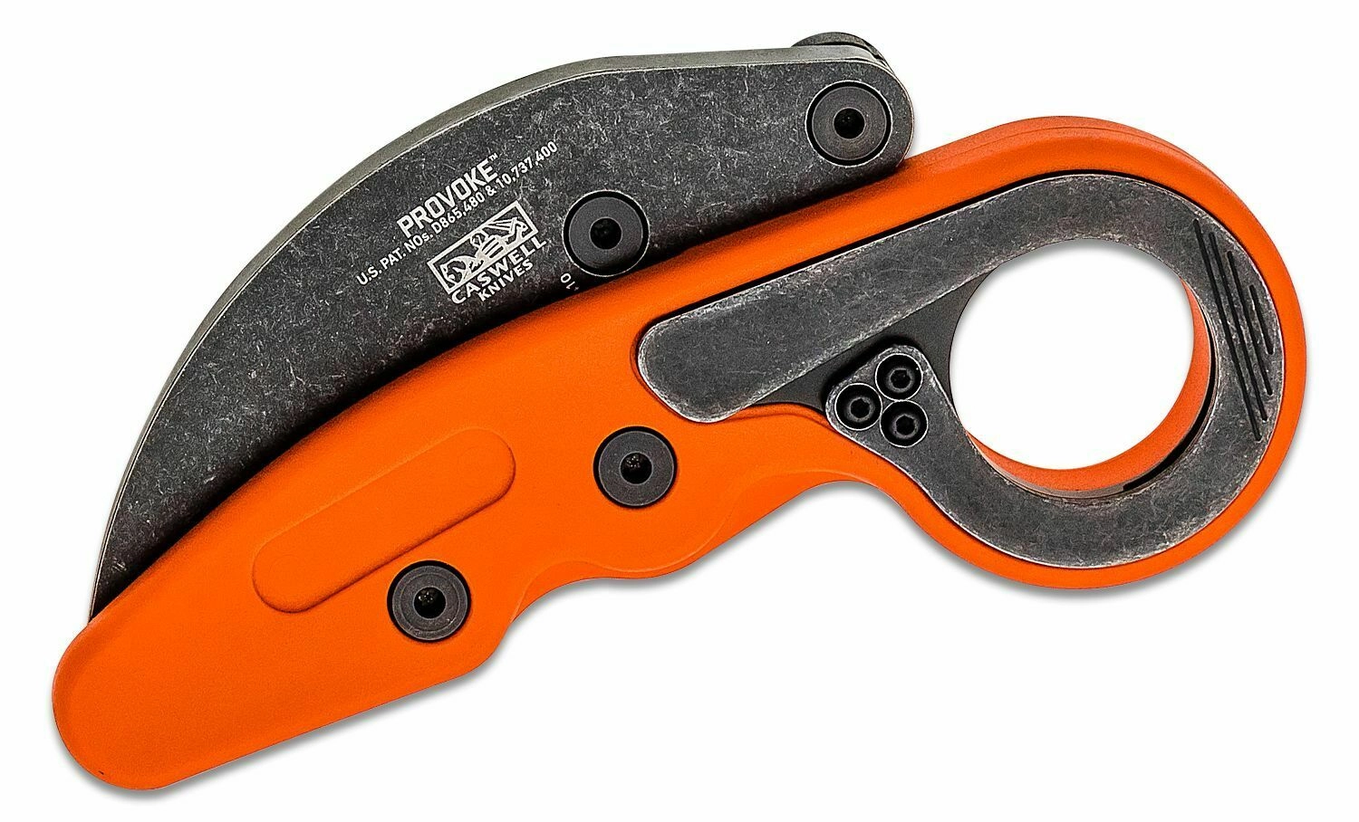 CRKT PROVOKE ORANGE este un karambit modern pentru purtare zilnică, remarcabil prin operarea lină și sigură. Mecanismul cinematic unic permite deschiderea rapidă prin apăsarea cu degetul mare, lama trecând fluent în poziția de lucru și blocându-se ferm. Finisajul stonewash reduce vizibilitatea zgârieturilor și sporește rezistența la utilizare frecventă.