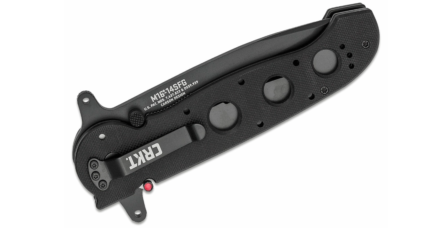 CRKT M16-14SFG este un cuțit tactic fiabil, proiectat pentru utilizare solicitantă. Geometria lamei tipo tanto, cu tăiș parțial zimțat, face față tăierilor, perforării și secționării frânghiilor sau chingilor. Finisajul negru minimizează reflexiile și protejează oțelul împotriva coroziunii.