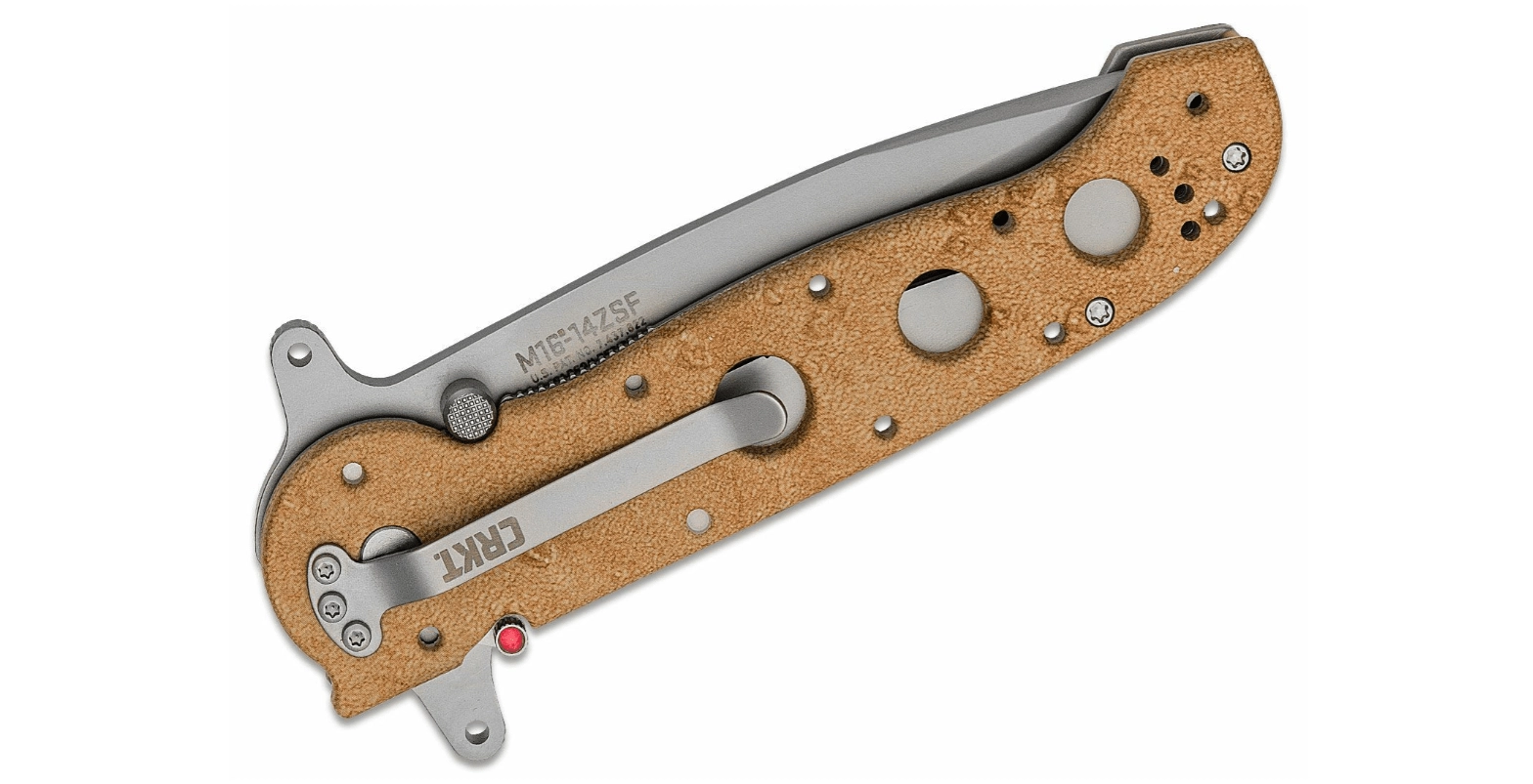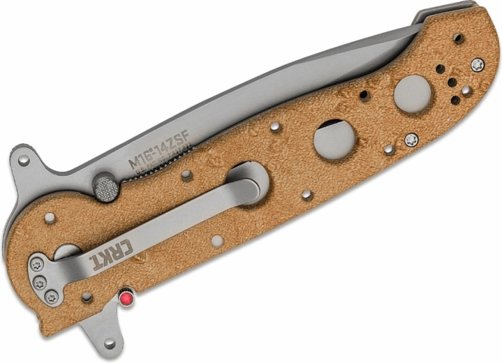 Modelul CRKT M16-14ZSF face parte din seria consacrată M16. Combină durabilitatea și funcționalitatea pe teren: lama Tanto din oțel inoxidabil AUS-8 cu finisaj mat reduce reflexiile, iar tăișul parțial zimțat face față frânghiilor, chingilor și materialelor de ambalare. Flipperul permite o deschidere rapidă și intuitivă cu o singură mână.