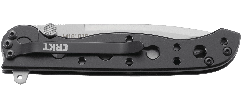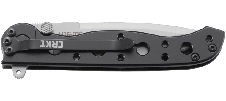 Construcția robustă este completată de mecanismul de blocare Framelock pentru siguranță la lucru. Mânerul din oțel inoxidabil cu oxid negru este perforat pentru reducerea greutății și aderență mai bună. Clipul de buzunar integrat permite purtare discretă și sigură în buzunar.