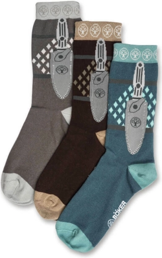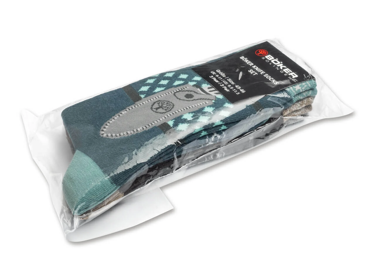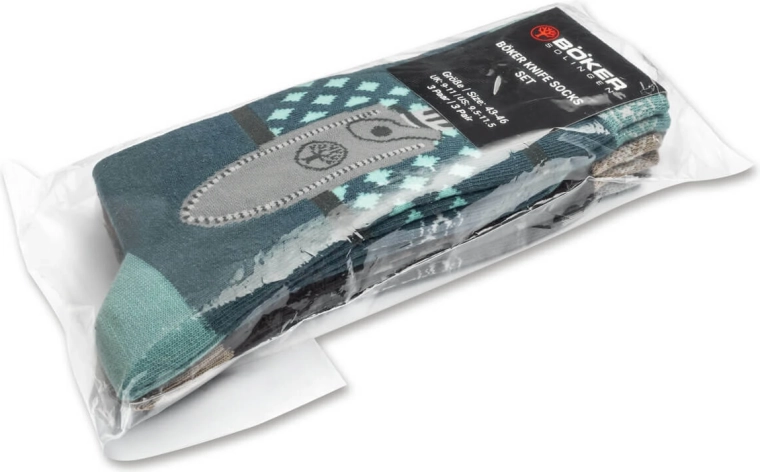 Șosete stilate și confortabile pentru fiecare zi: set de 3 perechi Böker Manufaktur Solingen cu motivul legendarului cuțit Applegate‑Fairbairn. În pachet găsiți variantele de culori maro, gri și albastru. Datorită amestecului de bumbac, poliamidă și elastan se așază excelent, sunt respirabile și rezistente pentru „misiunile” voastre zilnice acasă, la muncă și la evenimente.