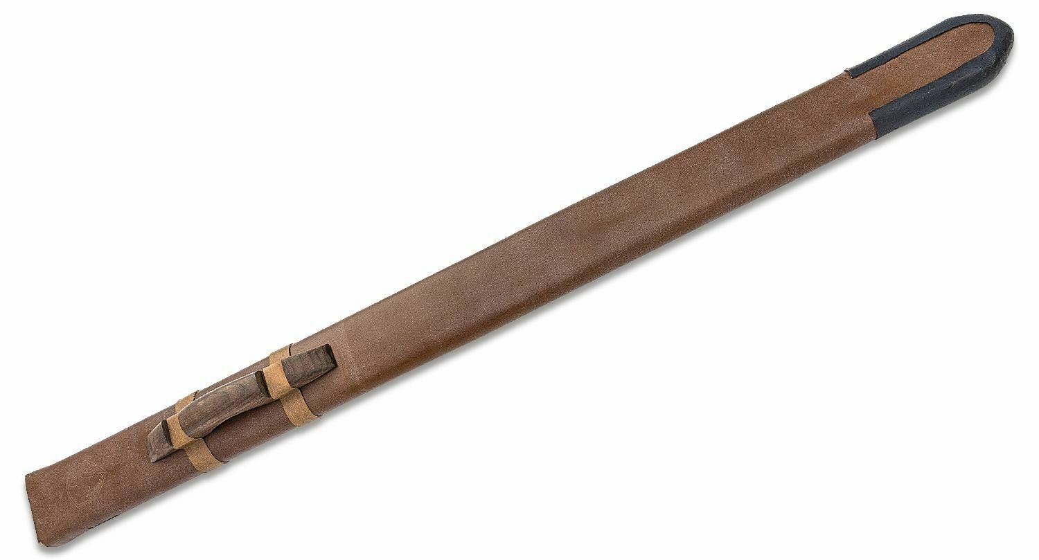 Teaca durabilă din piele, cu capete ranforsate, protejează lama și facilitează transportul, precum și o prezentare elegantă în interior.