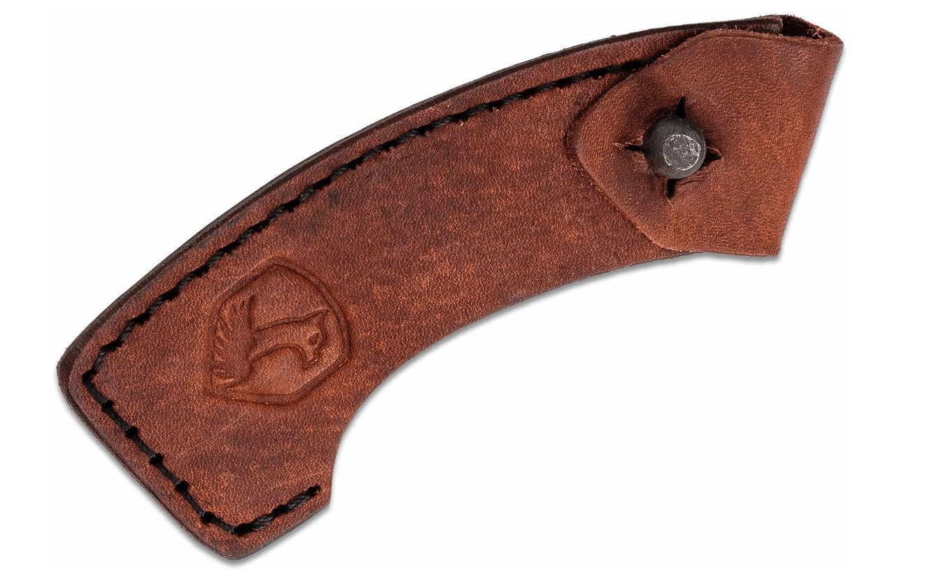 Husa din piele lucrată manual protejează tăișul, facilitează transportul și prelungește durata de viață a uneltei.