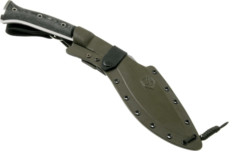 Mașeta în forma iconică de kukri se bazează pe unealta consacrată a luptătorilor Gurkha nepalezi. Datorită curburii pronunțate și părții frontale mai grele, este excelentă pentru tăierea rapidă și eficientă a lemnului, curățarea crengilor, precum și pentru sarcini solicitante outdoor și tactice. Oțelul carbon 1075 oferă tenacitate ridicată și performanță fiabilă pe teren.