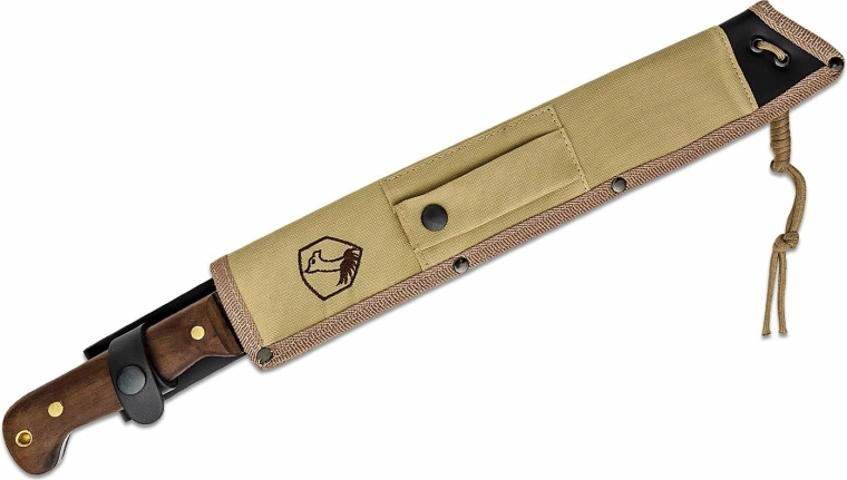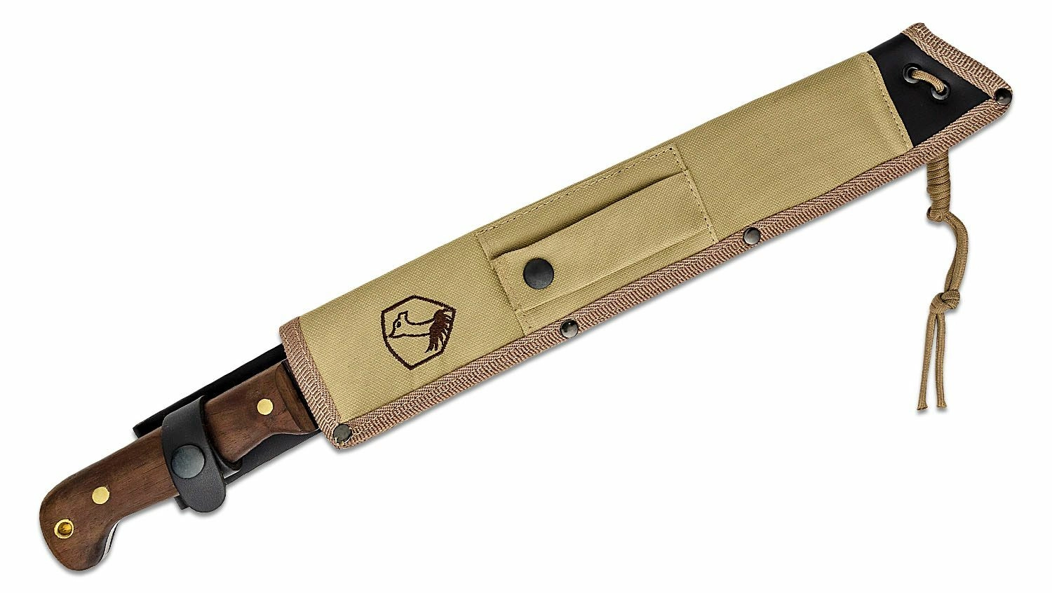 Machetă robustă, inspirată de echipamentul armatei australiene, oferă performanță fiabilă pe teren. Lama din oțel carbon 1075, mânerul ergonomic din lemn de nuc și teaca din pânză cu buclă din piele pentru purtare confortabilă fac din acest instrument o alegere ideală pentru bushcraft, camping și lucrări de grădină.