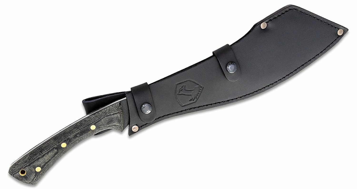 Lama din oțel carbon 1075 cu acoperire epoxidică pulbere rezistă bine la coroziune și uzură și se ascuțește ușor. Mânerul ergonomic din Micarta cu textură fină oferă priză sigură chiar și cu mănuși sau în condiții umede. Pachetul include o teacă din piele de calitate pentru purtare sigură.