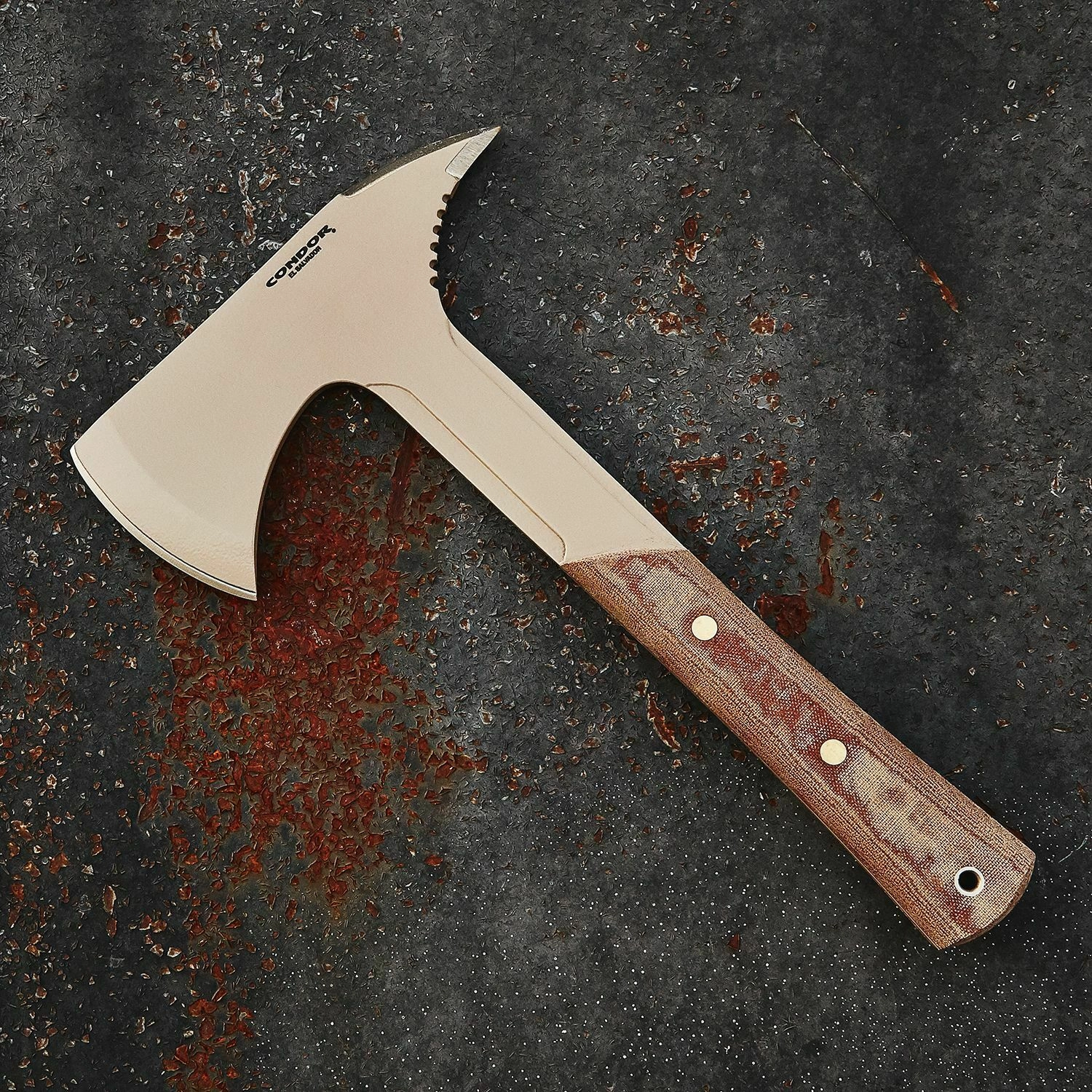 CONDOR Fortis Fidelis Axe continuă tradiția securelor navale într-o interpretare modernă. Capul din oțel 1075 cu conținut ridicat de carbon, cu pulverizare desert tan, oferă performanță fiabilă și protecție îmbunătățită împotriva coroziunii. Construcția integrală full-tang sporește rezistența și durabilitatea chiar și în utilizare intensă.