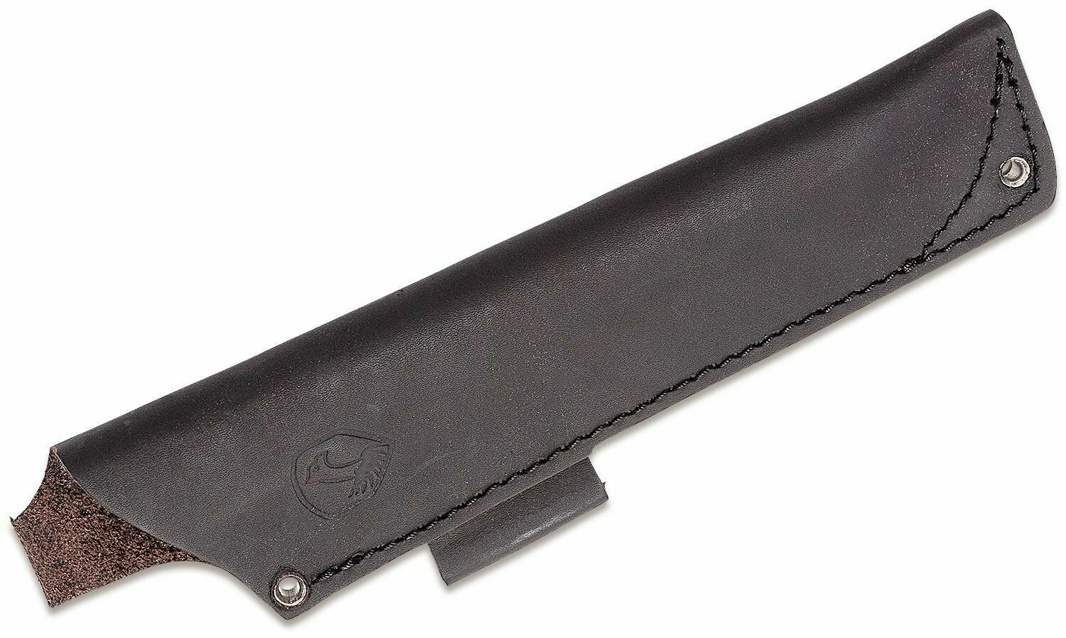 Teaca rezistentă din piele, cusută, protejează lama și permite agățarea comodă la curea pentru acces rapid pe teren.