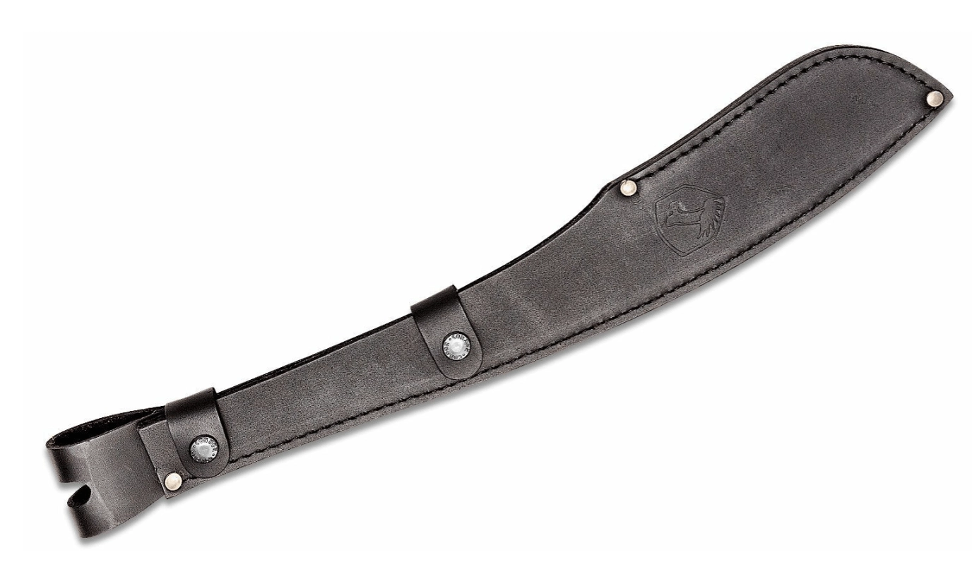 Mânerul din lemn tare, cu capăt lărgit, oferă prindere sigură și control asupra uneltei chiar și la lovituri puternice. Pachetul include un toc solid din piele, cu buclă pentru curea, pentru purtare sigură și confortabilă.