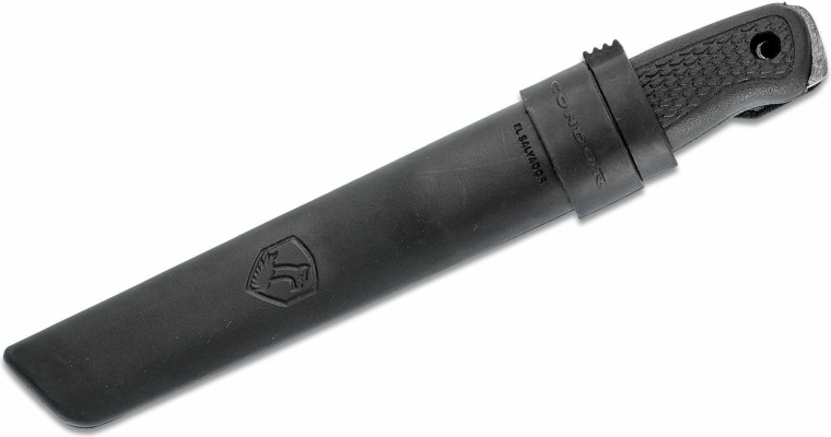 Mânerul ergonomic din polipropilenă, în culoare neagră, se așază foarte bine în mână și are la capăt orificiu pentru șnur sau prindere. Este inclusă o teacă din polipropilenă compatibilă cu modelul Bushglider, care poate fi purtată pe partea dreaptă sau stângă – ideală pentru purtare zilnică pe teren.