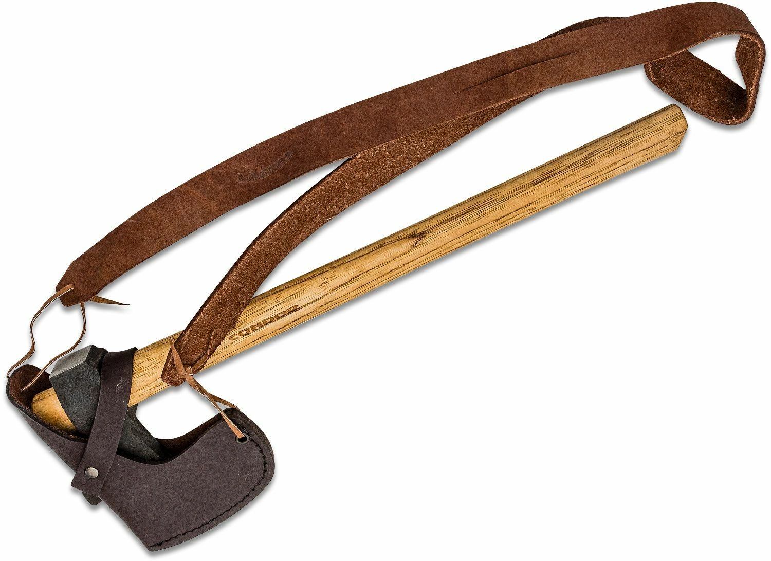 Mânerul din hickory american este cunoscut pentru elasticitatea și rezistența sa. Este interschimbabil, astfel încât puteți, la nevoie, să montați ușor unul nou sau să vă confecționați unul propriu după preferințe. Pachetul include o husă elegantă din piele cu curea de umăr pentru depozitare în siguranță și purtare confortabilă.