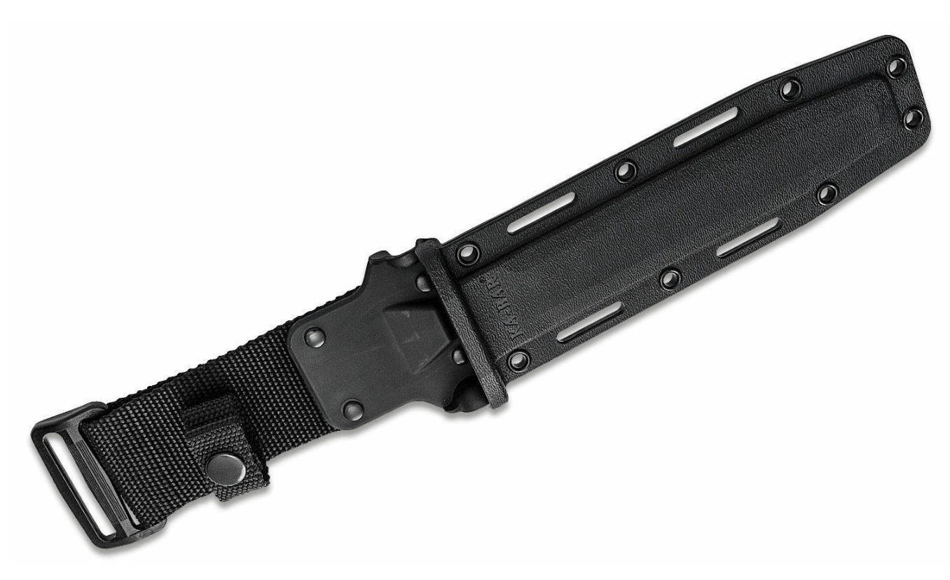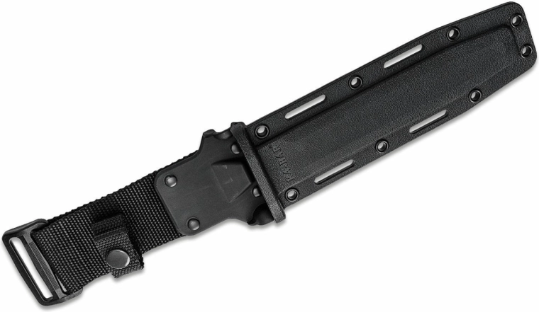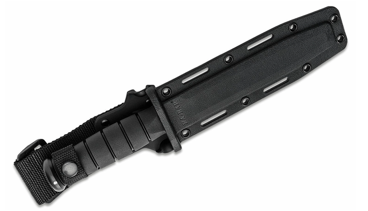Mânerul ergonomic din Kraton se așază excelent în palmă, nu alunecă nici când este ud, iar împreună cu garda dublă protejează degetele împotriva rănirii. Cuțitul este livrat cu teacă Kydex, care permite purtare sigură și versatilă.