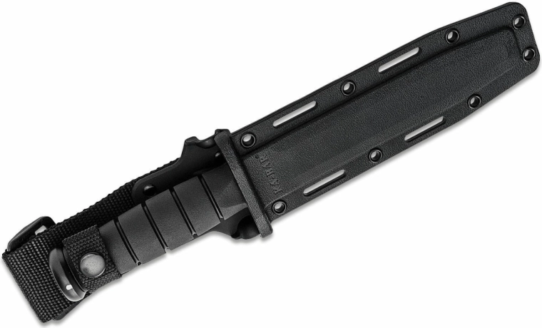KA-BAR Full Size Black este un cuțit de încredere pentru outdoor, drumeții și utilizare tactică. Bazat pe designul militar consacrat USMC, se remarcă prin rezistență, funcționalitate și siguranță în orice situație. Lama de tip Clip Point cu tăiș neted și finisaj negru sporește rezistența la coroziune și reduce reflexiile.