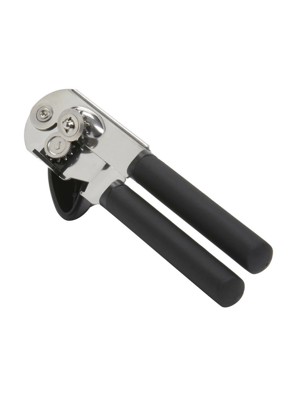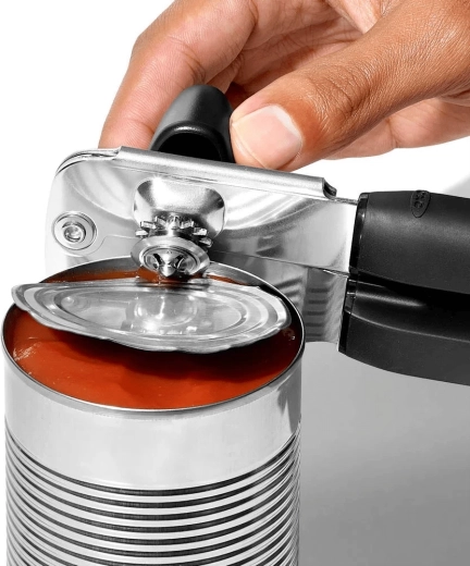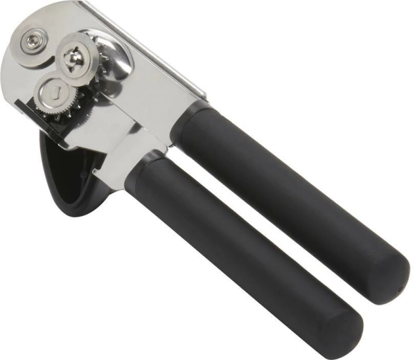 Deschizător de conserve fiabil cu rotiță tăietoare ascuțită din inox, mânere confortabile antiderapante și mecanism mare de rotire pentru deschidere ușoară, fără efort. Include și deschizător integrat pentru capace tip coroană.