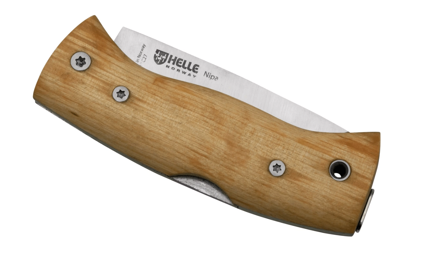 HELLE Nipa este un cuțit de buzunar fiabil, cu design scandinav minimalist, potrivit atât în natură, cât și în mediul urban. Mânerul prelucrat manual dintr-o singură bucată de mesteacăn încrețit oferă cuțitului un aspect unic și o prindere sigură, în timp ce oțelul inoxidabil Sandvik 12C27 garantează un tăiș de lungă durată și întreținere ușoară.