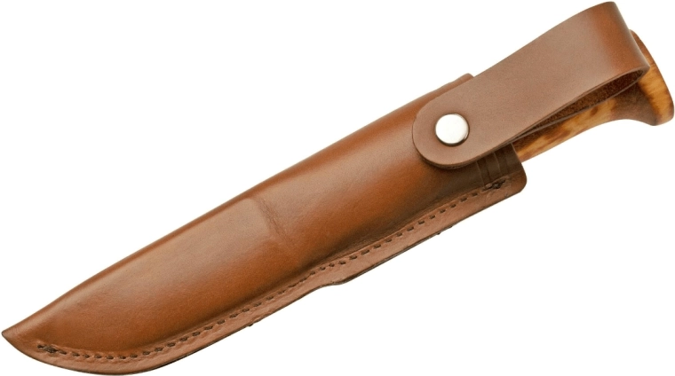 Lama fixă din oțel inoxidabil Sandvik 12C27 cu tăiș neted oferă menținere fiabilă a ascuțișului, rezistență la coroziune și ascuțire ușoară în teren. Mânerul dintr-o singură bucată de mesteacăn ondulat, șlefuit manual, lustruit și uleiat, conferă cuțitului un caracter unic și un aspect natural. Pachetul include o teacă din piele pentru purtare în siguranță.
