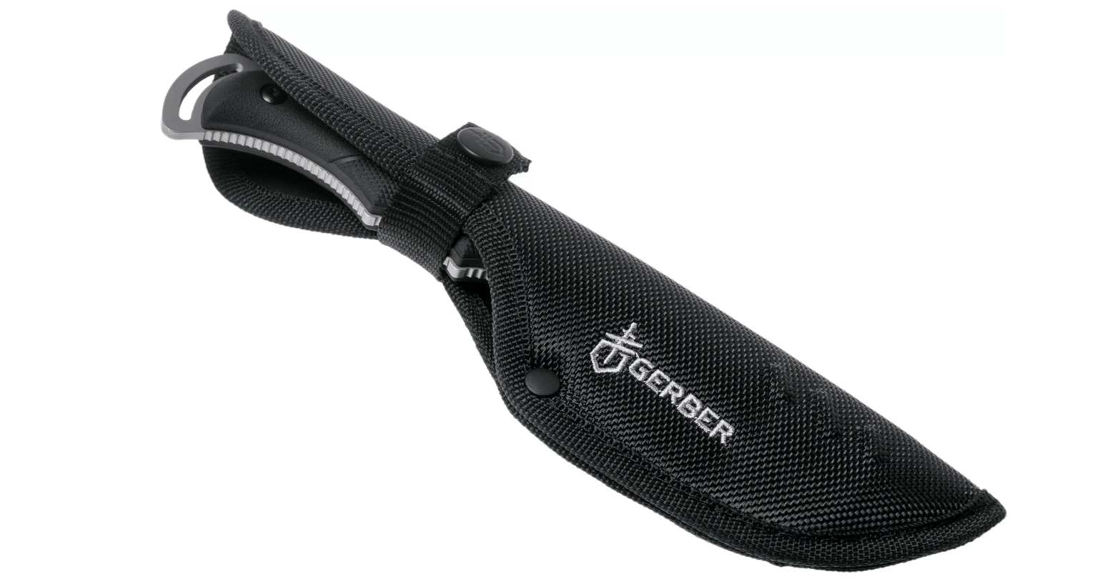 Construcția full-tang asigură rezistență și durată de viață îndelungată chiar și în utilizare solicitantă. Mânerul ergonomic din plastic negru, cu striații, oferă o priză sigură și confortabilă atât pe uscat, cât și pe umed. Husa practică din nailon permite purtare sigură și comodă la curea, astfel încât ai cuțitul mereu la îndemână.