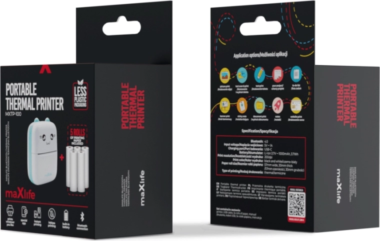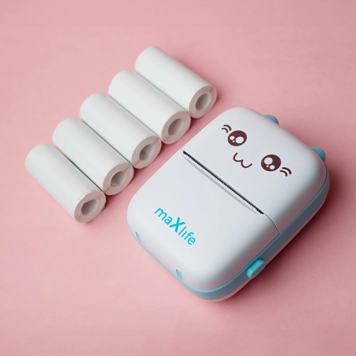 Bucură-te de libertatea de a tipări oriunde și oricând. Imprimanta portabilă Maxlife MXTP-100 Blue funcționează pe baza tehnologiei termice, astfel că nu are nevoie de cerneală sau toner. Trebuie doar să introduci hârtia termică și să începi să creezi: de la notițe rapide, autocolante și etichete până la fotografii și desene simple în alb-negru.