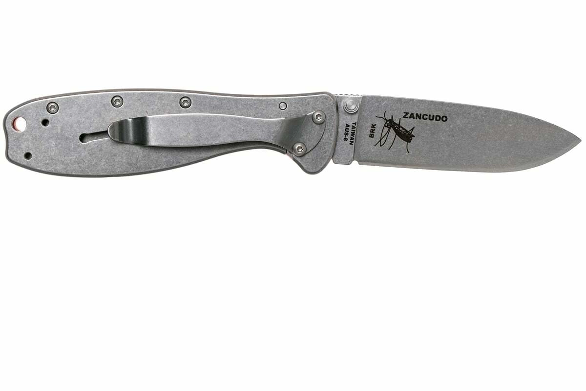 ESEE Zancudo este un cuțit de buzunar subțire și discret, conceput pentru utilizarea zilnică. Oțelul inoxidabil de calitate AUS-8 cu finisaj stonewash maschează mai bine zgârieturile fine și oferă o tăiere fiabilă. Pinul pentru degetul mare permite deschiderea comodă cu o singură mână, în timp ce siguranța Frame Lock menține lama ferm pe poziție.