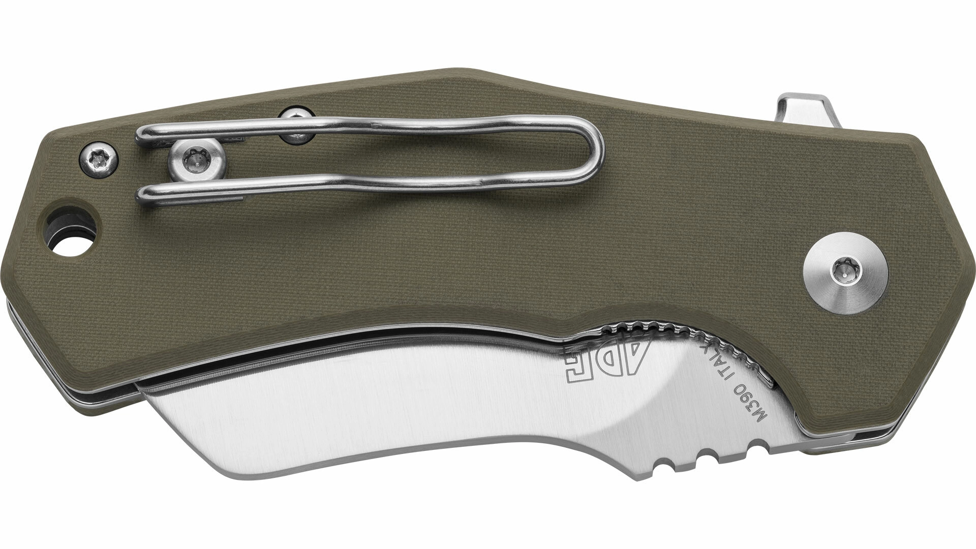 Lama tip Sheepsfoot din oțel inoxidabil premium Böhler M390, cu finisaj satinat, se remarcă prin excelenta retenție a tăișului și rezistența la coroziune. Flipperul asigură deschidere rapidă și cursivă cu o singură mână, în timp ce blocarea Liner Lock oferă siguranță la lucru. Mânerul texturat din G10, în variantă verde, stă ferm în palmă și oferă durabilitate ridicată chiar și în condiții mai solicitante. Clipsul de buzunar practic și orificiul pentru șnur facilitează purtarea și adaptarea la echipament.