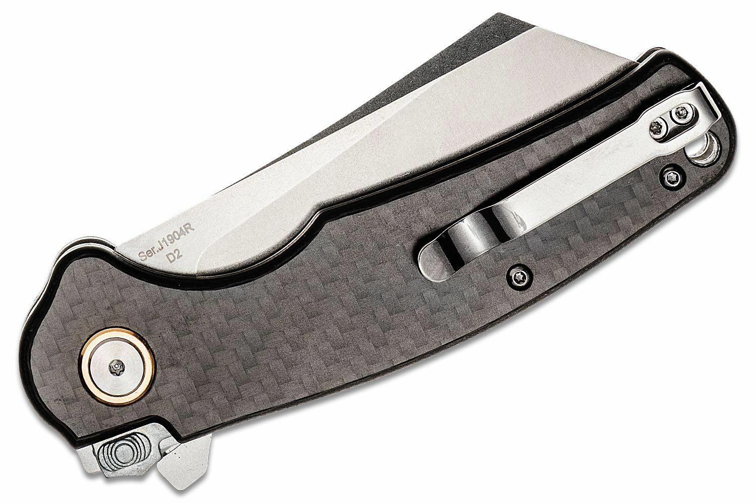 Deschiderea cu o singură mână este asigurată de flipper cu cursă lină, iar blocarea sigură este realizată de Recoil-Lock inspirat de mecanisme consacrate pentru mai multă siguranță la lucru. Mânerul ergonomic din fibră de carbon este ușor, rezistent și plăcut în palmă. Nu lipsesc clema de buzunar pentru purtare discretă și orificiul pentru lanyard pentru extragere rapidă.