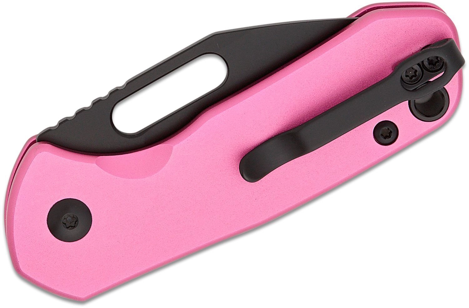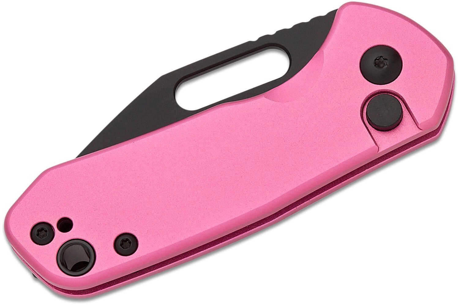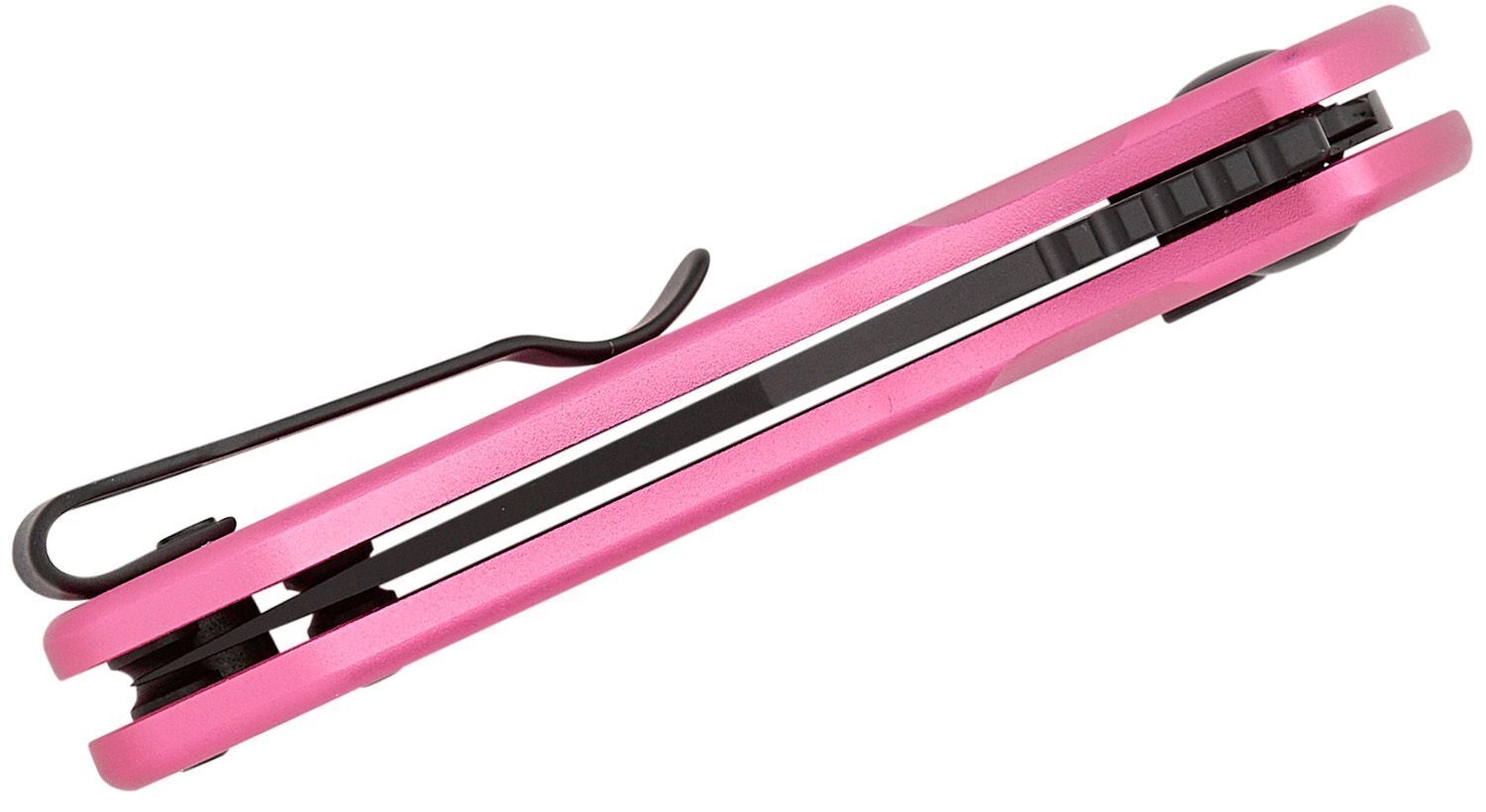 Deschiderea prin orificiul pentru degetul mare este rapidă și lină datorită rulmenților cu bile, în timp ce blocarea Button Lock oferă siguranță și operare confortabilă. Mânerul ușor din aluminiu, în culoare roz, se potrivește bine în mână, are orificiu pentru șnur și clemă de buzunar din oțel pentru purtare discretă.