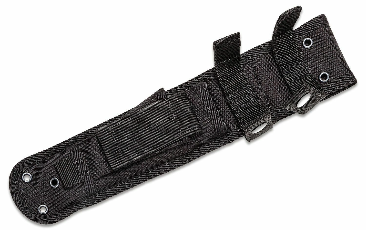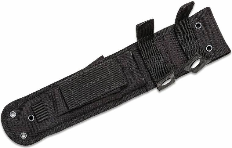 Mânerul din Zytel cu textură anti-alunecare garantează o prindere sigură chiar și pe umed. Capătul metalic al mânerului servește ca spargător de geamuri sau pentru lovituri ușoare. Transportul și protecția sunt asigurate de teaca rezistentă din poliester, cu buzunar frontal pentru accesorii mici.