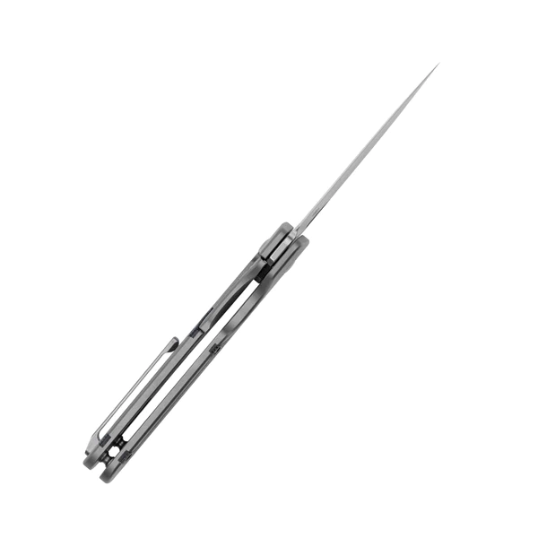 Cuțit pliabil elegant cu un design futurist de la Jonathan Militaw, care combină oțel premium S35VN cu finisaj Stonewash, mecanism de blocare fiabil Framelock și mâner ușor din titan și micarta. Deschiderea este lină datorită orificiului pentru degetul mare și front flipper-ului, iar clipsul 3D din titan permite purtare comodă pe partea dreaptă.