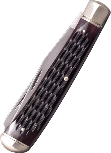 Mânerul din os maro vopsit, cu jigging fin (textură), oferă priză sigură și un aspect atemporal. Inserțiile metalice lustruite adaugă eleganță cuțitului și sporesc rigiditatea generală a construcției. Alegere ideală pentru EDC, drumeții, lucru în natură și pentru colecționarii de bricege tradiționale.
