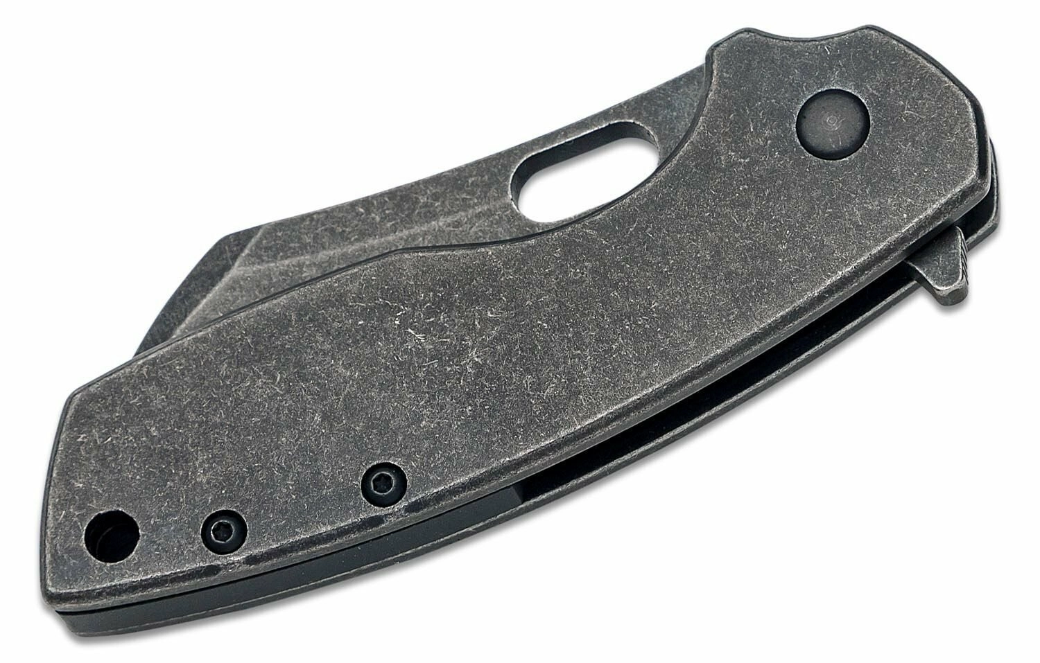 Oțelul inoxidabil robust cu finisaj Black Stonewash și blocarea de tip frame păstrează lama securizată chiar și la sarcini mai solicitante.