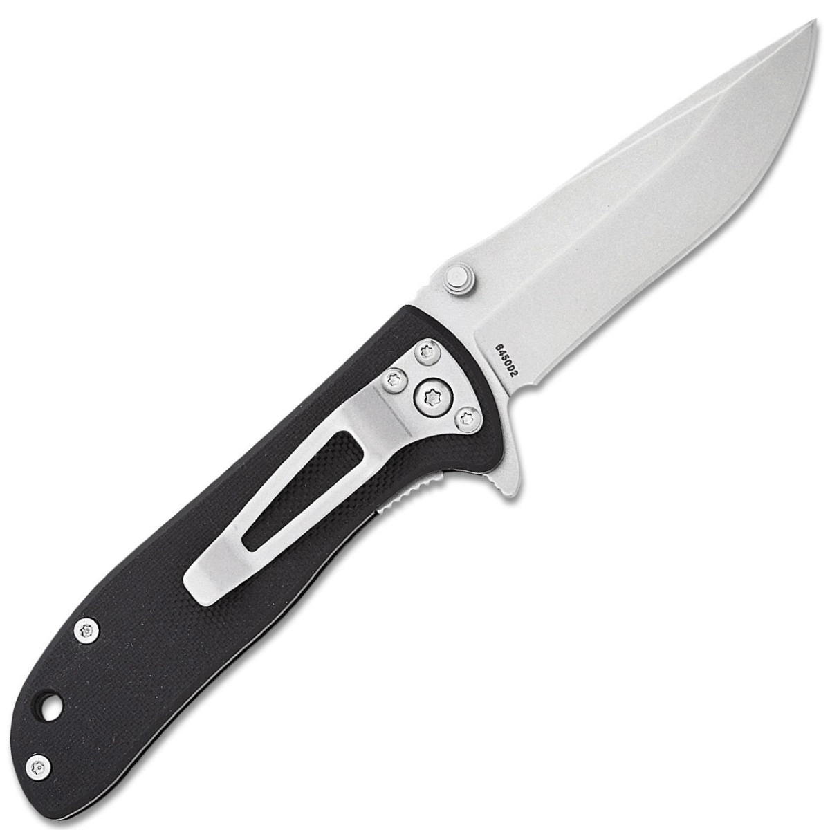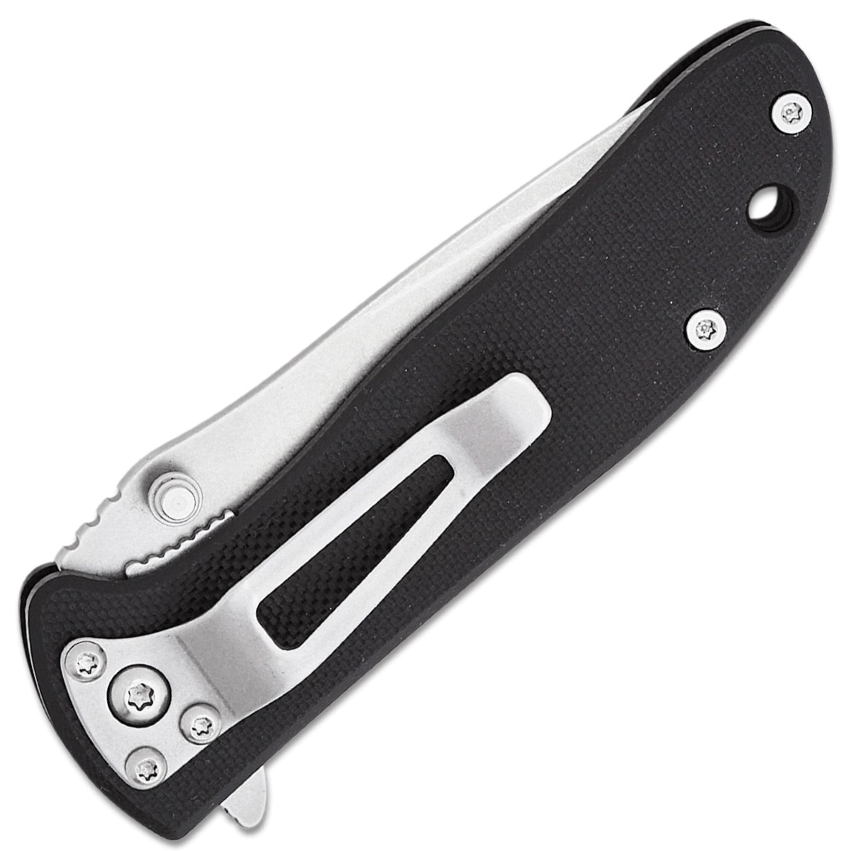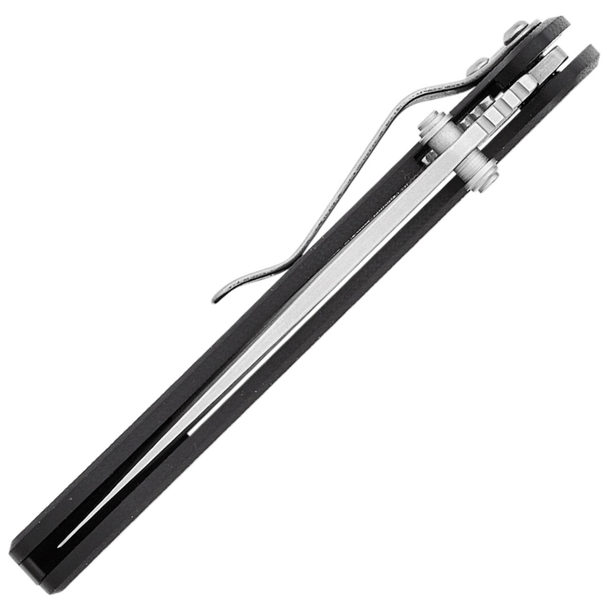 Deschiderea rapidă și intuitivă este asigurată de flipper și de pinul ambidextru pentru degetul mare – alegeți ce vi se potrivește. Mecanismul robust Linerlock fixează ferm lama în poziția de lucru. Mânerul ergonomic din G10 negru, cu textură antiderapantă, stă excelent în mână și este completat de o clemă practică de buzunar și un orificiu pentru paracord.