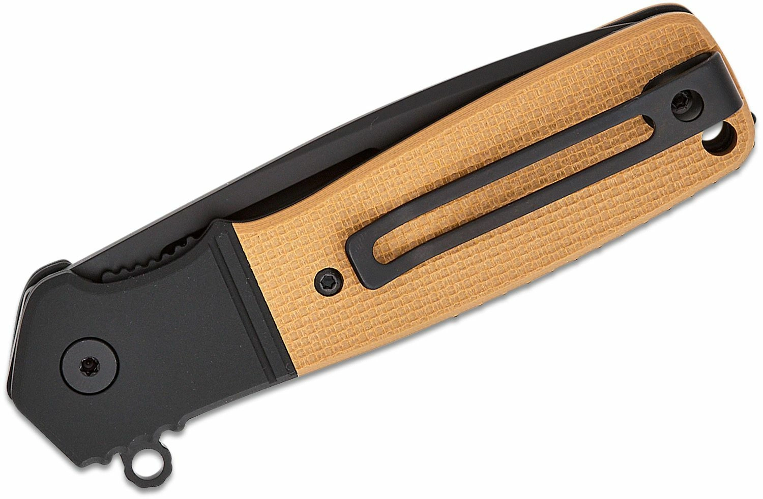 Deschiderea este rapidă și intuitivă cu ajutorul flipperului, iar linerlock asigură o blocare fiabilă. Mânerul ergonomic din aluminiu negru cu inserții G10 portocalii oferă prindere sigură chiar și în condiții mai dificile. Clema de buzunar practică și orificiul pentru șnur ușurează purtarea zilnică.