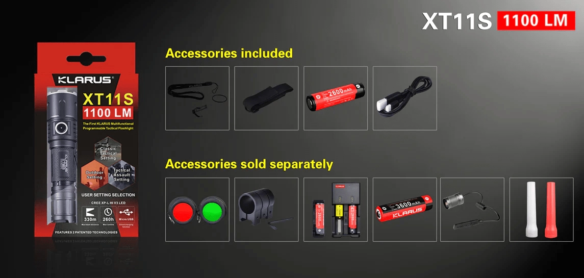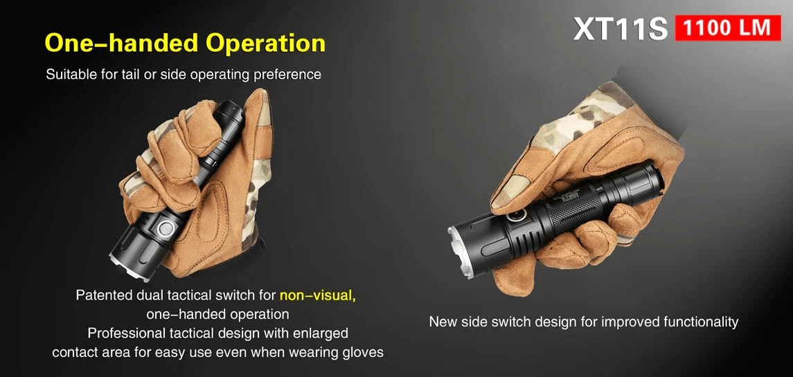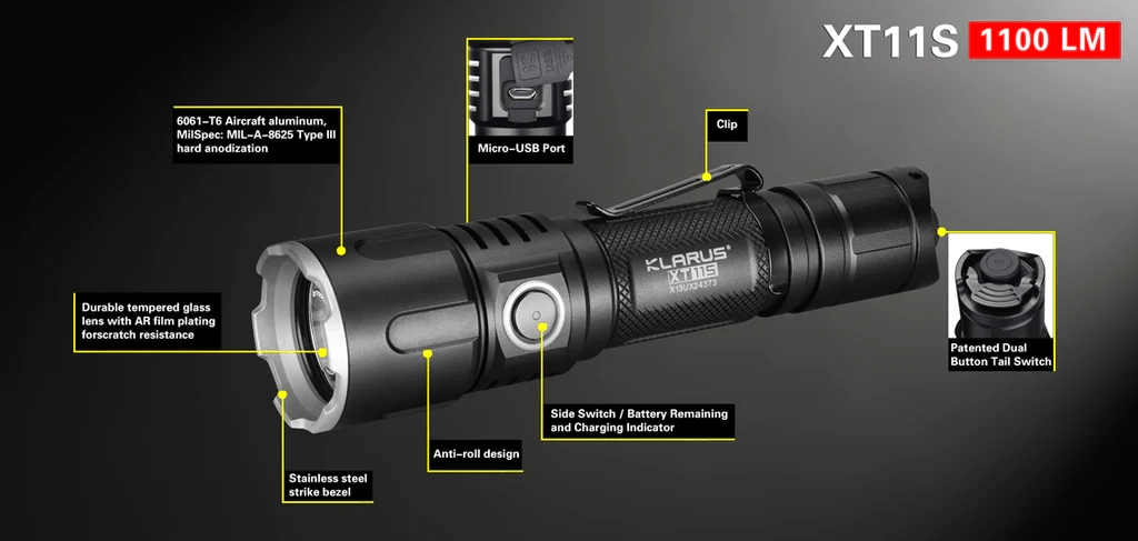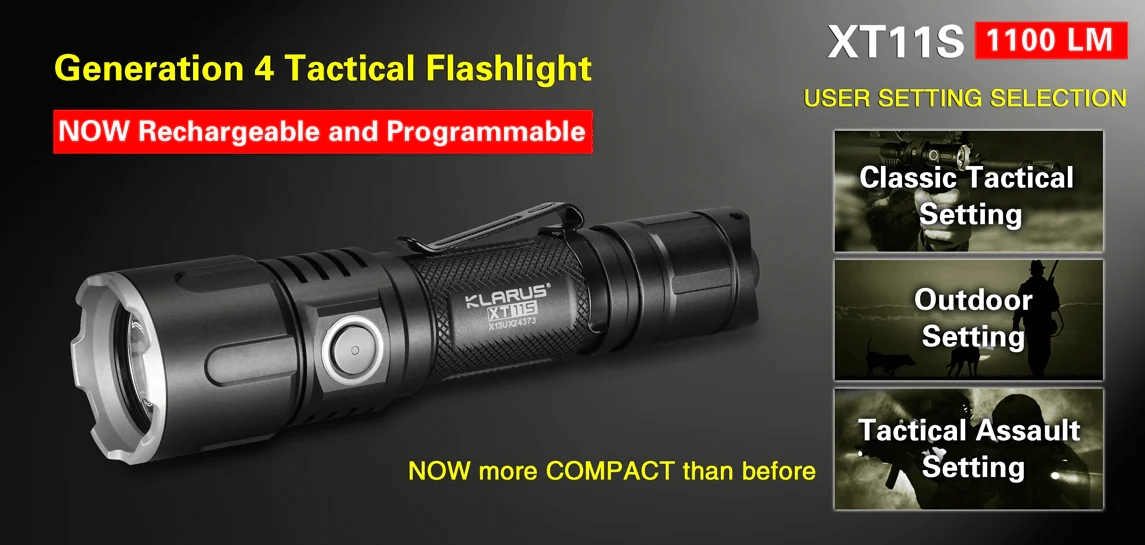 KLARUS XT11S este a 4‑a generație a îndrăgitelor lanterne tactice XT. Echipată cu LED CREE XP‑L HI V3, oferă până la 1100 lumeni cu fascicul de până la 330 metri. Datorită ergonomiei și triplului comutator patentat (principal, de mod și lateral) puteți schimba rapid modurile chiar și cu mănuși și în orice situație.