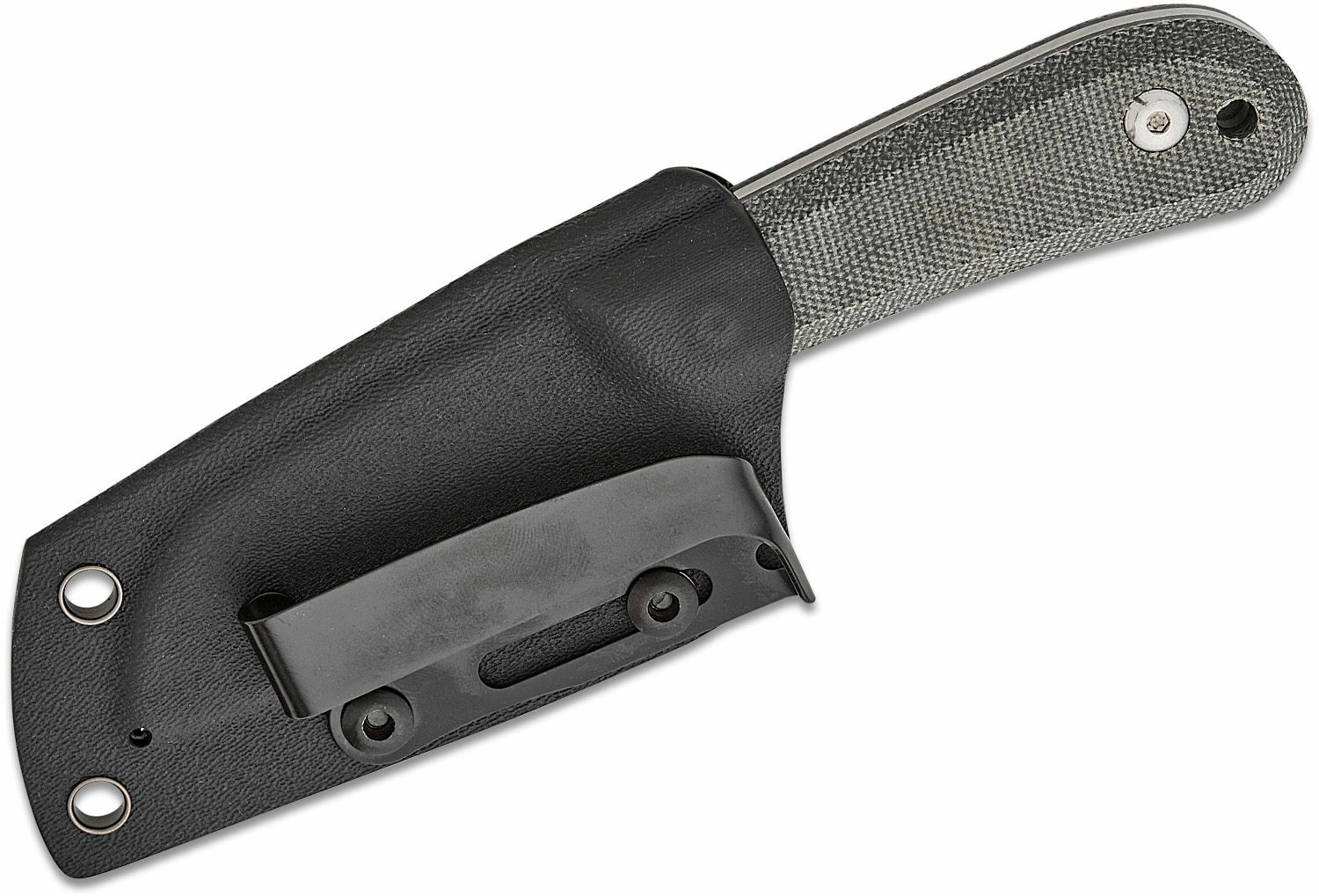Mânerul din Micarta de culoare neagră, cu miez solid din G10, se așază bine în mână și asigură o prindere sigură chiar și în condiții mai dificile. Orificiul practic pentru șnur permite atașarea de paracord sau buclă de siguranță. Pachetul include teacă Kydex pentru purtare sigură și confortabilă.