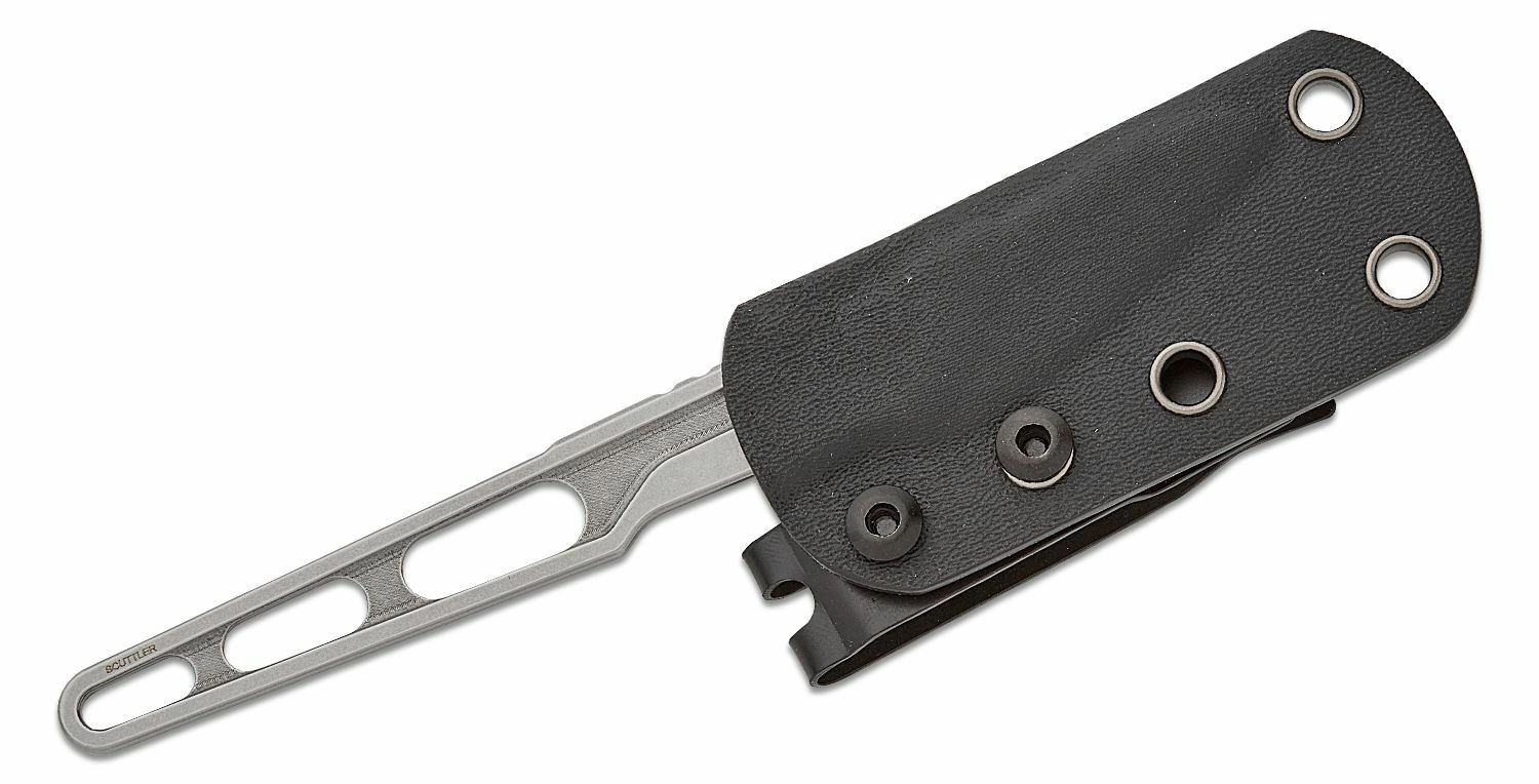 Pachetul include o teacă Kydex, care permite depozitarea sigură și accesul rapid la cuțit în activitățile de zi cu zi. Datorită lungimii compacte a lamei de 5,2 cm, este ideal pentru tăieturi precise, sarcini mărunte și purtare discretă.