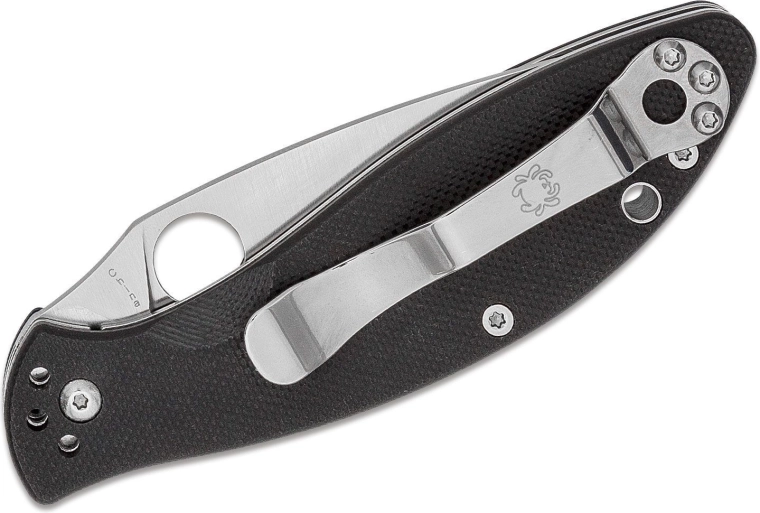 Orificiul rotund din lamă permite deschidere lină cu degetul mare – semnătura tipică a mărcii SPYDERCO.