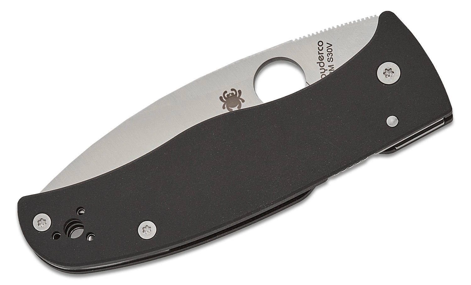 Construcția legendară Spyderco din modelul Bodacious combină oțelul de top CPM S30V cu finisaj satin și forma versatilă a lamei Leaf Shape. Teșitura plată completă facilitează tăieturi curate și precise, în timp ce deschiderea cu o singură mână prin orificiul rotund SpyderHole este rapidă și intuitivă.