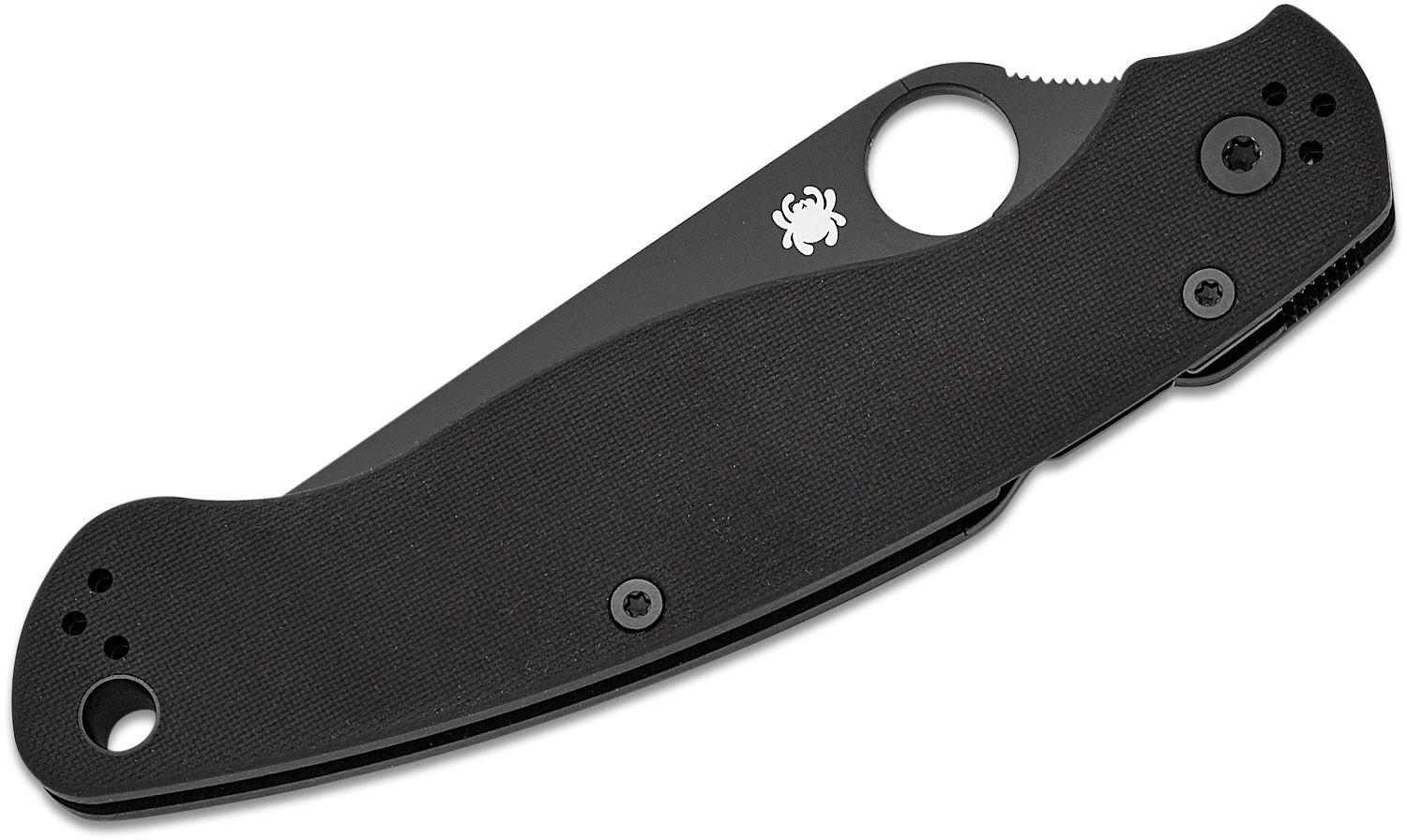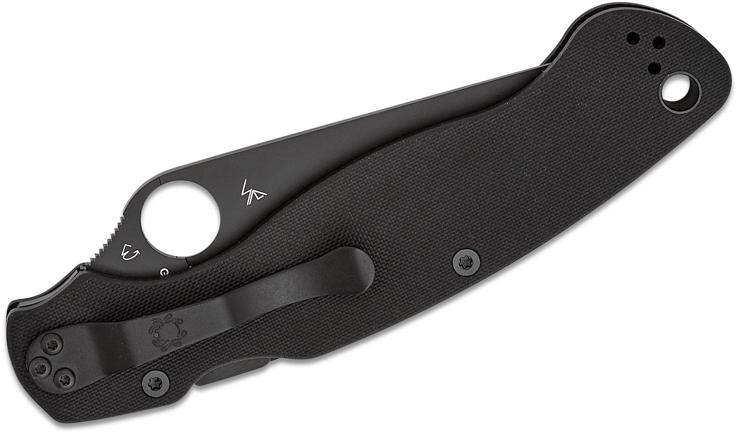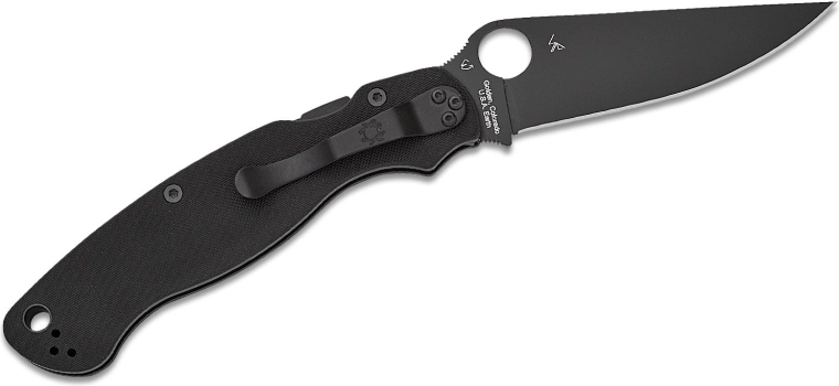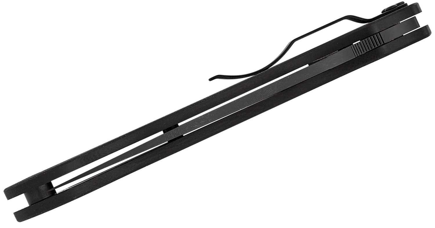 Mânerul din G10, complet negru, este texturat pentru aderență sigură atât pe uscat, cât și pe umed. Cuțitul se deschide prin orificiul din lamă caracteristic și este blocat de robustul Compression Lock pentru rezistență și siguranță maxime. Clema de buzunar poate fi repoziționată în patru poziții pentru adaptare perfectă la purtare.