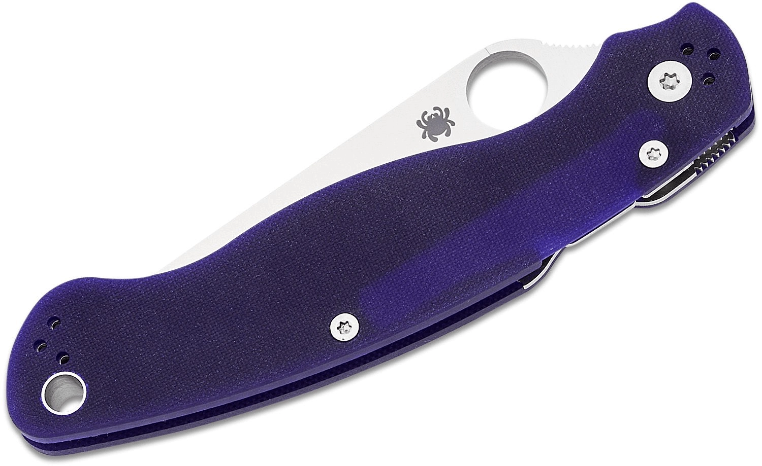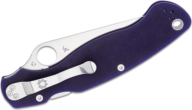 SPYDERCO Military 2 Dark Blue este evoluția modernă a legendarului model Military. Datorită oțelului CPM-S110V, tăișul rămâne ascuțit foarte mult timp chiar și în utilizare intensă, în timp ce profilul Drop Point cu tăiș neted oferă tăieturi precise și controlate. Orificiul pentru degetul mare mare permite deschidere lină cu o singură mână.