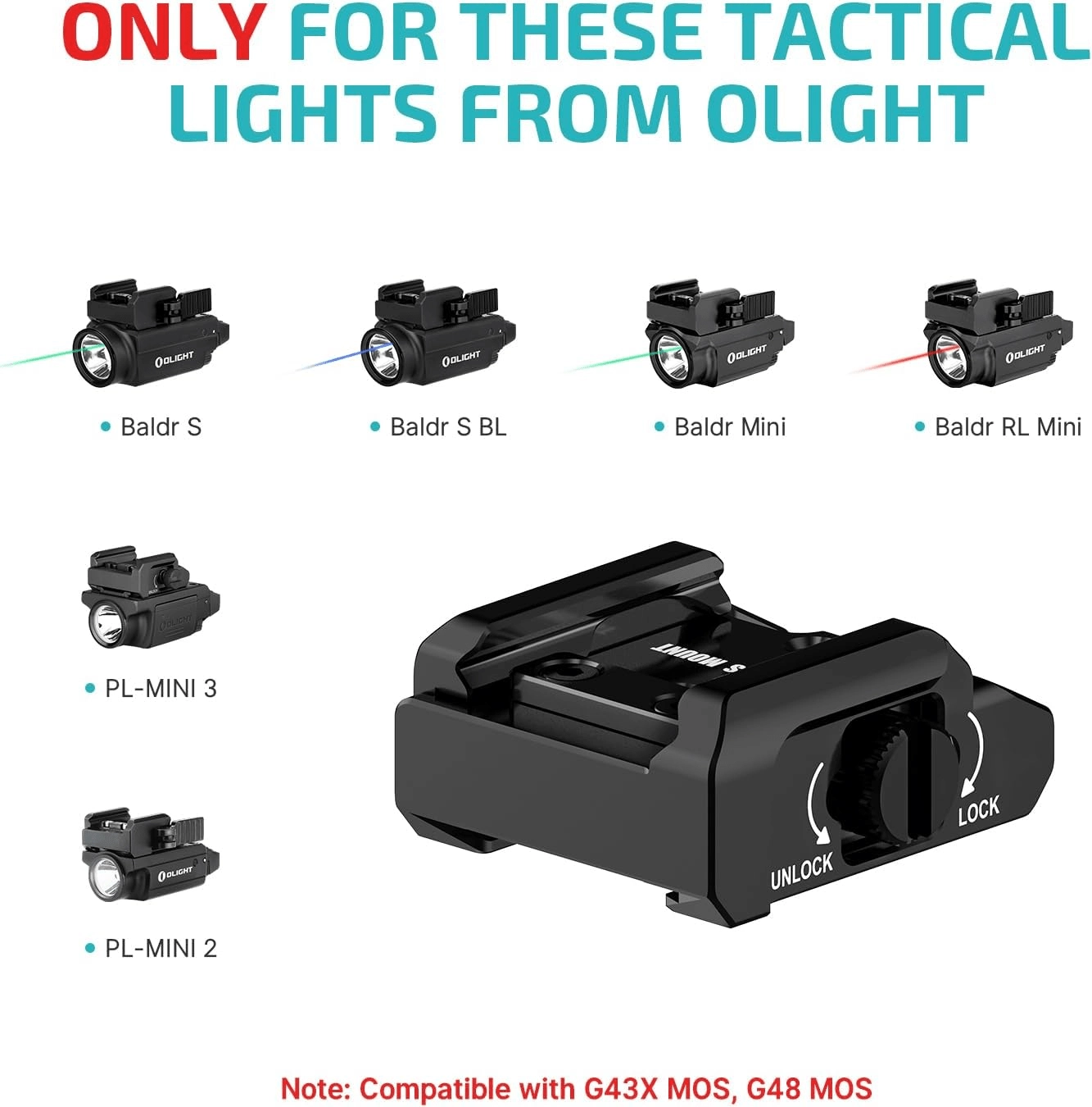 OLIGHT 43X MOS este o montură concepută special pentru platformele compacte GLOCK 43X MOS/48 MOS. Permite atașarea lanternelor tactice populare și, datorită glisării line pe șină, setarea poziției ideale pentru un control rapid și sigur.
