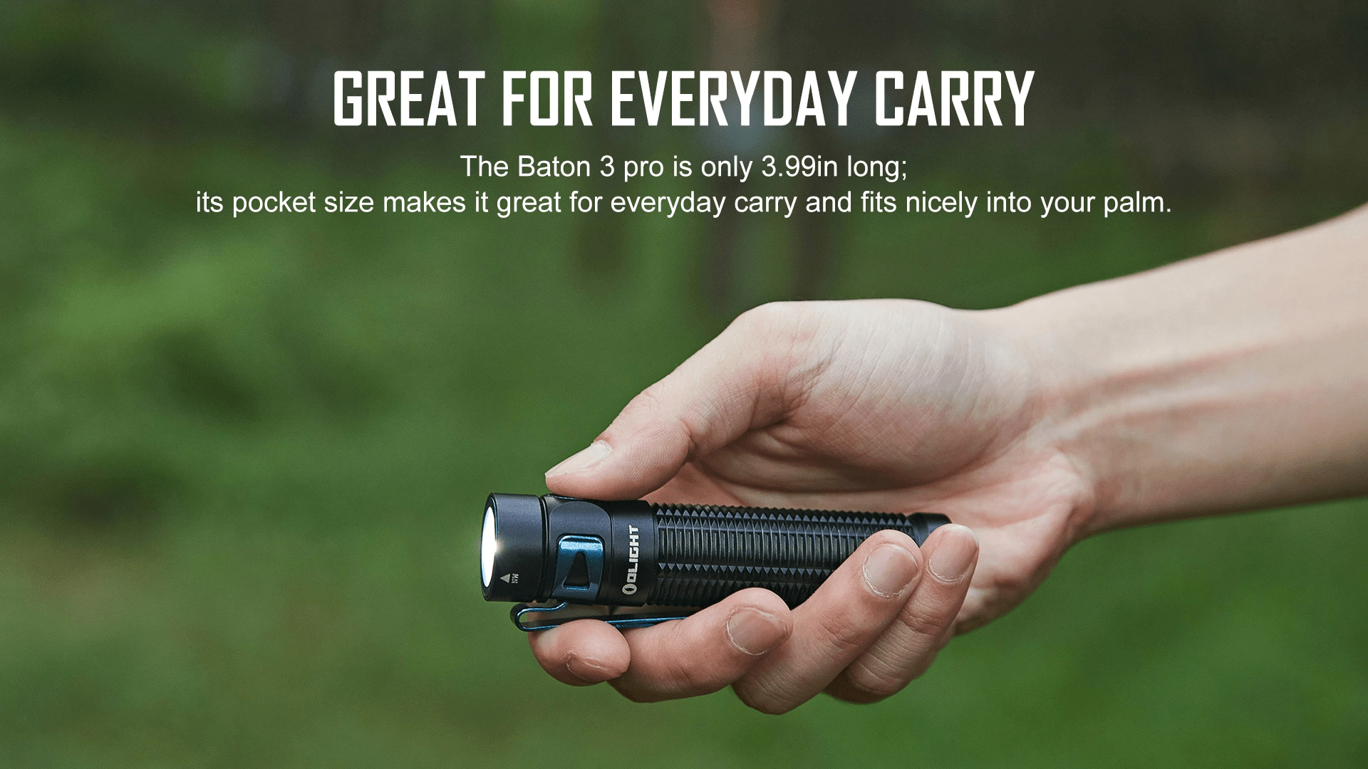 OLIGHT Baton 3 Pro CW este o lanternă performantă, dar de buzunar, ideală pentru purtare zilnică, lucru și activități în aer liber. Oferă un flux luminos de 1.500 lm cu rază de 175 m și o autonomie extremă de până la 120 de zile în modurile joase. Datorită dimensiunilor compacte (lungime 10,13 cm) și greutății de 103 g, o puteți ascunde ușor în palmă, buzunar sau rucsac.