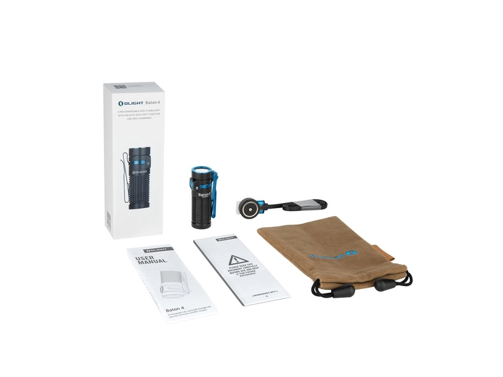 - Lampă Olight Baton 4 Black 1300 lm, cablu magnetic de încărcare MCC 1A, husă, manual