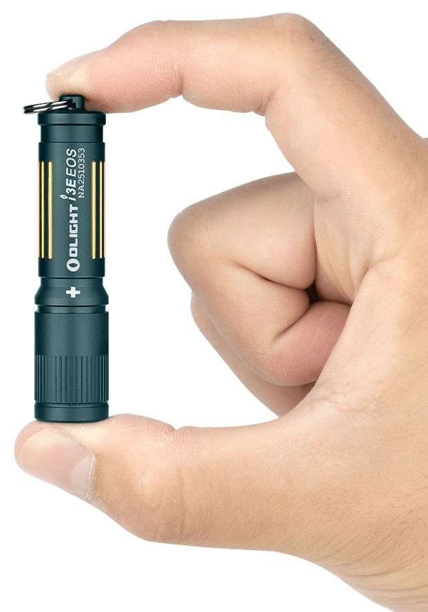 Olight i3E EOS este o lanternă extrem de mică și ușoară, concepută pentru purtare zilnică. LED-ul performant Philips LUXEON TX în combinație cu optica PMMA TIR creează un fascicul concentrat și curat, cu o bătaie de până la 44 metri. Datorită diametrului de 14 mm și greutății de doar 19,4 g, încape fără efort în buzunar sau pe inelul cu chei.
