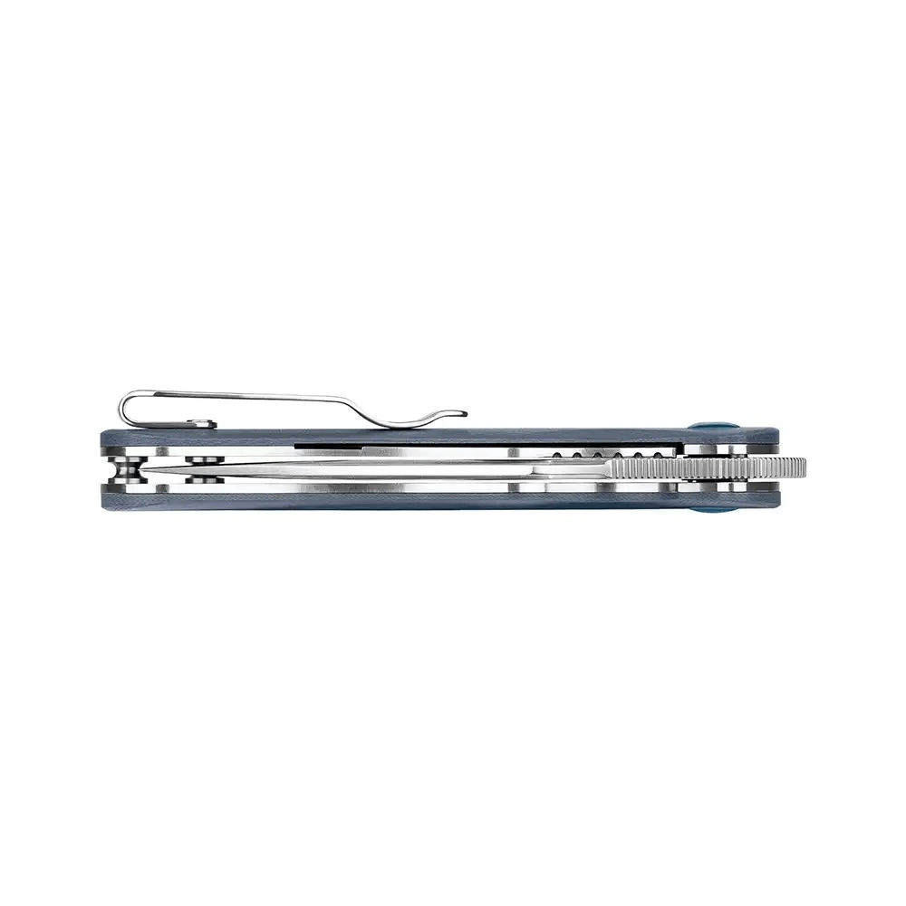 Mânerul ergonomic din G10 se așază excelent în mână și oferă o priză sigură chiar și la utilizare îndelungată. Siguranța Liner Lock fixează fiabil lama în poziție deschisă, iar clema adâncă de buzunar permite o purtare discretă. Splint îmbină funcționalitatea, durabilitatea și designul curat, cu un accent albastru pe pivot.