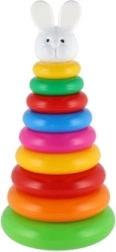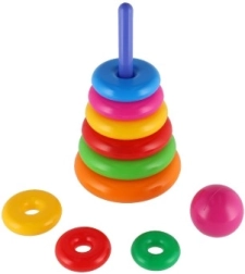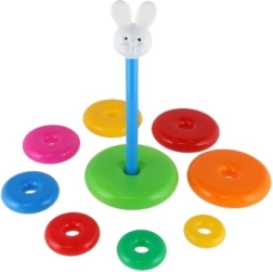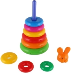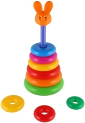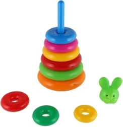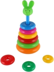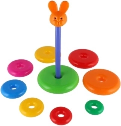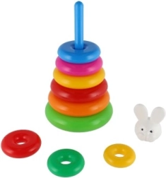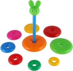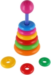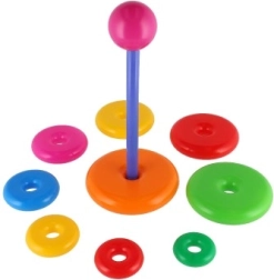 Această piramidă stivuibilă cu inele colorate este prima jucărie de construcție ideală. Copiii introduc inelele pe tijă și le așază de la cel mai mare la cel mai mic, antrenând în mod natural motricitatea fină, răbdarea și gândirea logică. Baza este formată dintr-un suport solid din plastic cu tijă și o piesă superioară detașabilă (în funcție de variantă).