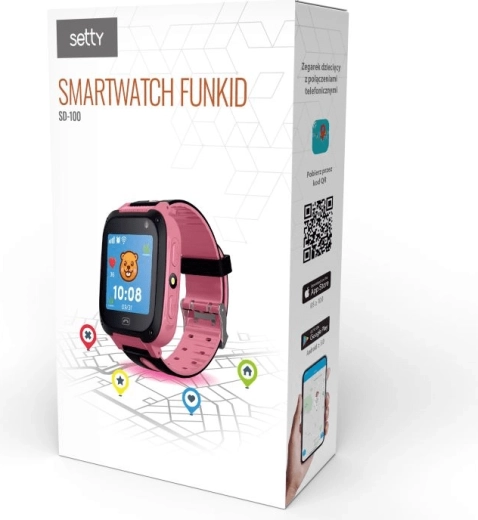 Ceasul Setty FunKids SD-100 îi ajută pe copii să descopere lumea și le oferă părinților liniște. Datorită localizării prin LBS puteți afla oricând poziția aproximativă a copilului, iar funcțiile de monitorizare a vocii și apel SOS sporesc siguranța în situațiile de zi cu zi. Ecranul tactil intuitiv și cureaua confortabilă cu lungimea de 230 mm asigură o purtare plăcută și o operare ușoară.