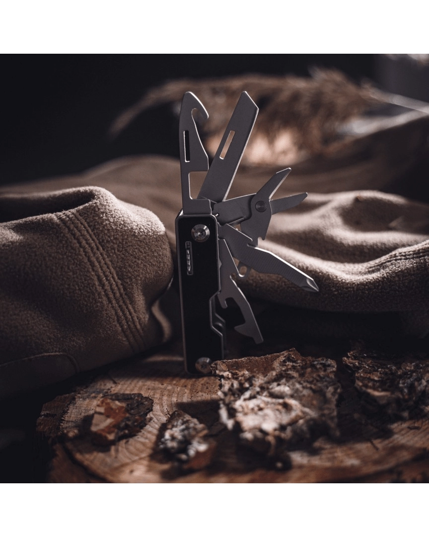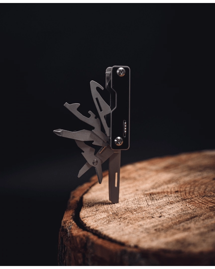 Datorită selecției bine gândite de unelte, veți reuși tăierea, tăiatul cu foarfeca, pilirea și înșurubarea fără volum inutil. Este excelent ca multitool EDC pentru buzunar, rucsac sau ca accesoriu pentru chei.