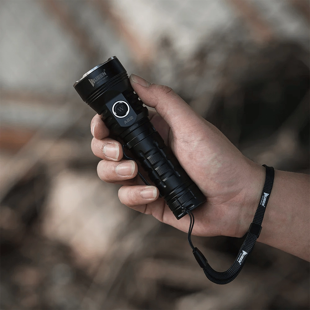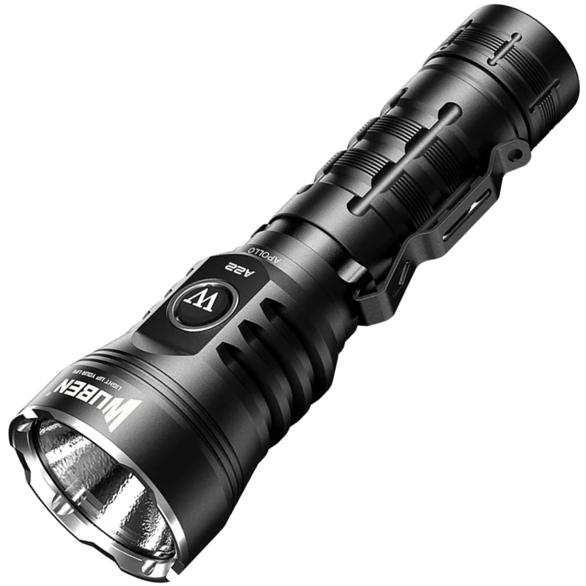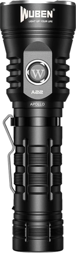 Wuben A22 este o lanternă fiabilă pentru camping, drumeții, atelier și casă. Datorită LED-ului CREE XHP70.2 oferă un fascicul extrem de luminos de până la 4 500 lumeni cu bătaie de 290 metri. Corpul metalic ergonomic cu clemă, reflector adânc și buton lateral asigură utilizare confortabilă și sigură chiar și în condiții solicitante.