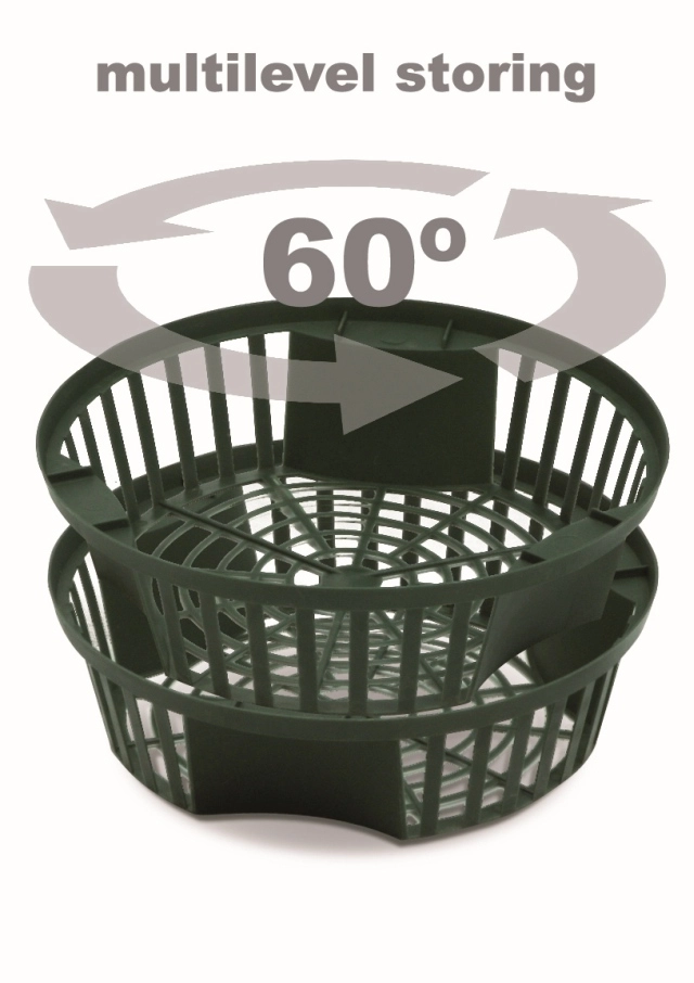 Pereții și baza aerate permit un flux optim de apă și aer, ceea ce reduce riscul de putrezire și susține un sistem radicular viguros. În afara sezonului, coșurile pot fi stivuite practic, economisind spațiu și permițând reutilizarea lor – ecologic și economic.